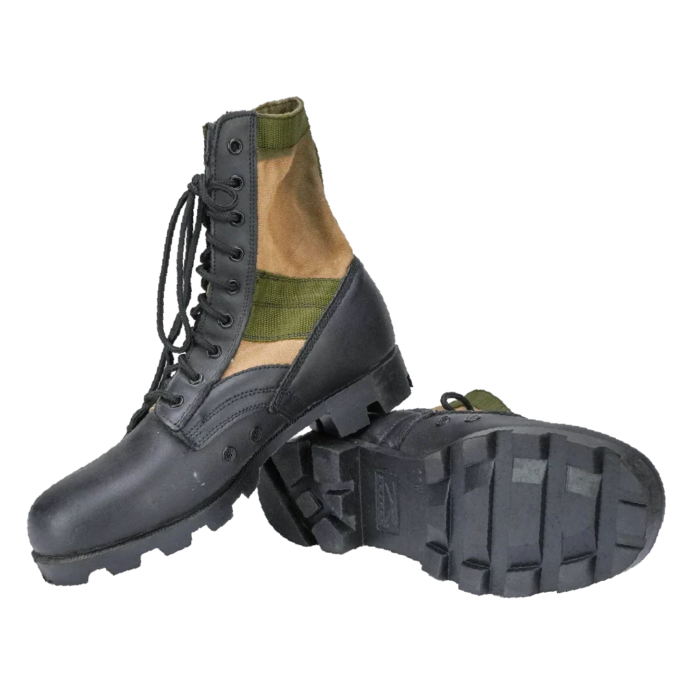 Rothco jungle boots in olive drab, commercial production. Classic high-cut design with lace-up front and reinforced toe.