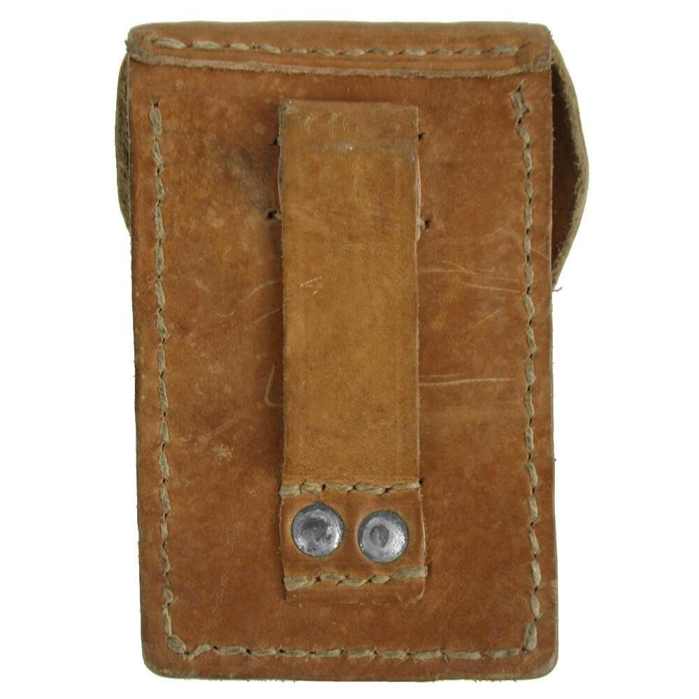 These Serbian or Yugoslav People's Army leather pouches are a compact and sturdy cartridge pouch. Rigid and defined these also are great for general purpose storage. A fantastic use for this pouch is making it into a potable medical or survival kit. The light, compact nature is great for carrying around or attaching to your gear. The tough leather keeps your equipment safe from taking hits. These come in an array of browns and some could do with more conditioning than others, but they are all ultra durable.