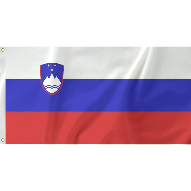 Slovenia adopted their flag in 1991 shortly after gaining independence from Yugoslavia. The flag is very similar to Slovakia's one, the only difference being the unique Slovenian coat of arms. The coat of arms portrays Slovenia's highest mountain 'Triglav' and the Adriatic Sea. The three stars are taken from the Counts of Celje, the great Slovene dynastic house of the 14-15th centuries.