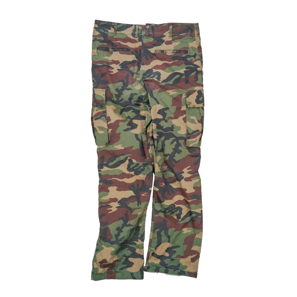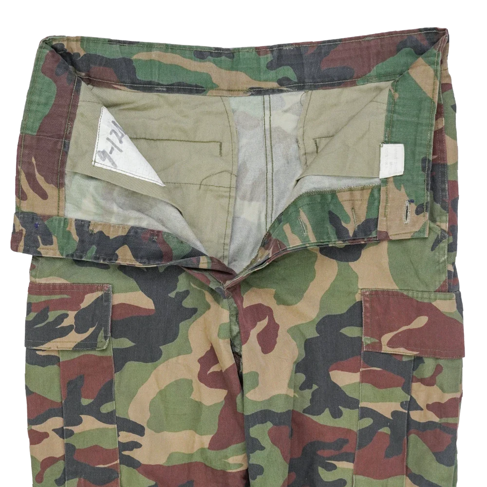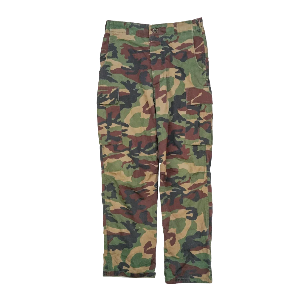 South Korean M90 woodland field trousers in medium sizing. Standard military field trouser construction with cargo-style pocket layout and reinforced areas for durability.