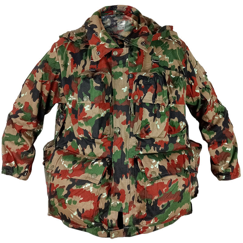 This Swiss army M70 jacket was the pinnacle of quality and versatility for it's time. Issued from 1957 to 1983, this jacket was designed with a huge amount of storage, it's essentially a load bearing system on a jacket! All in iconic TAZ 57 (Alpenflage).