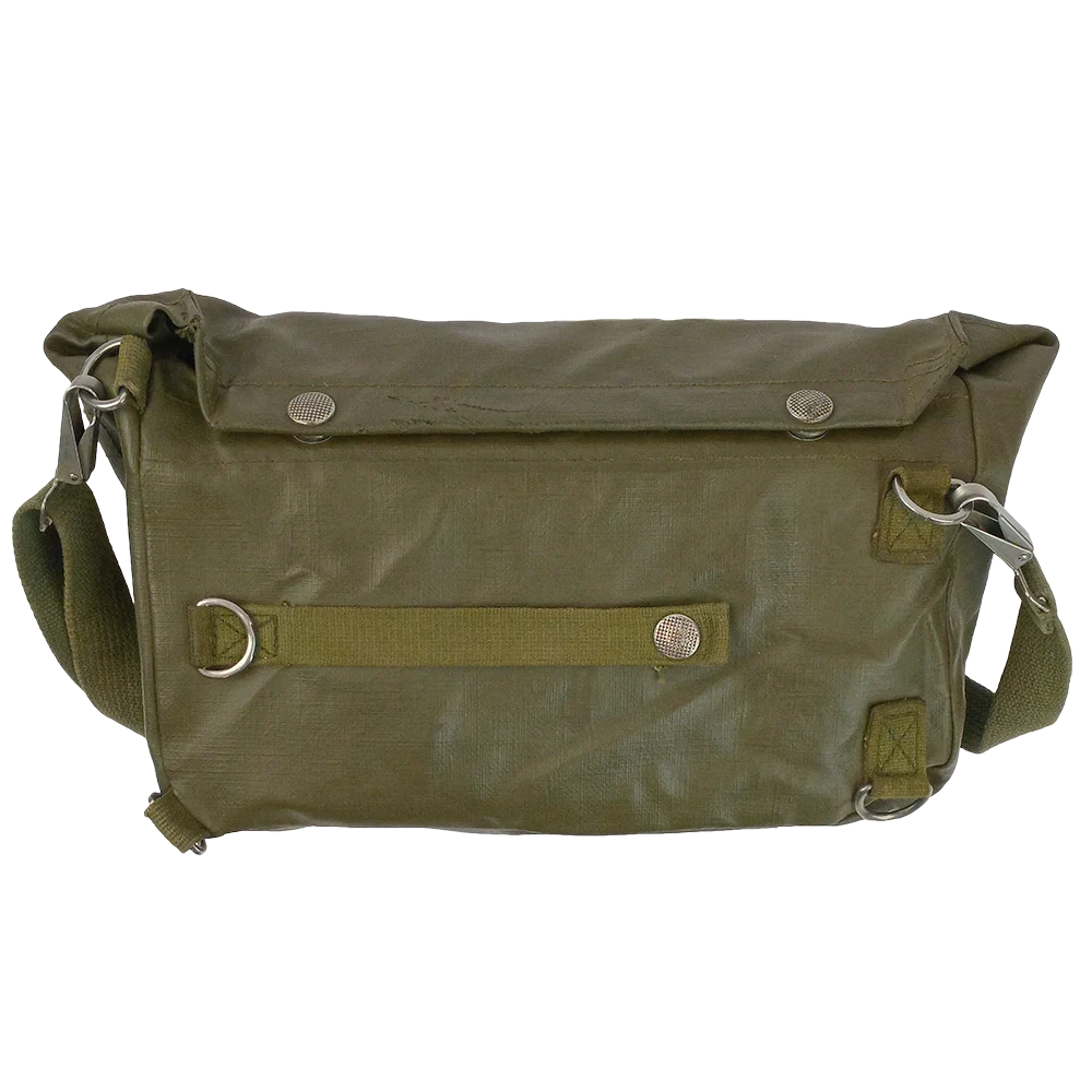 Another great quality Swiss product. This gas mask bag is rubber coated canvas, making the bag both water resistant and durable. It also has a full-length hook & loop closure pocket on the inside. With four D-rings in each corner you can also move the adjustable shoulder strap into any position that suits you. A great bag for campers or anyone needing to keep gear safe and dry.