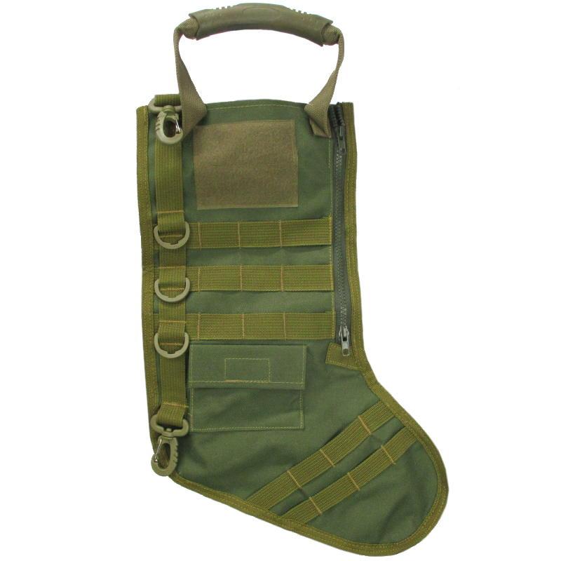 Are you or one of your loved ones an absolute tactical fanatic? Treat them this Christmas with a tactical stocking! With plenty of room to stuff tactical goodness inside, the outside is much the same. With multiple strips you can attach any MOLLE pouches and the kitchen sink if you need too. A carry handle, two rotating clips and multiple D-rings provides plenty of options for mounting above the fireplace or tree. The finishing touch is the hook & loop area - buy one for each family member and slap on their favourite morale patch so they will know it is theirs!