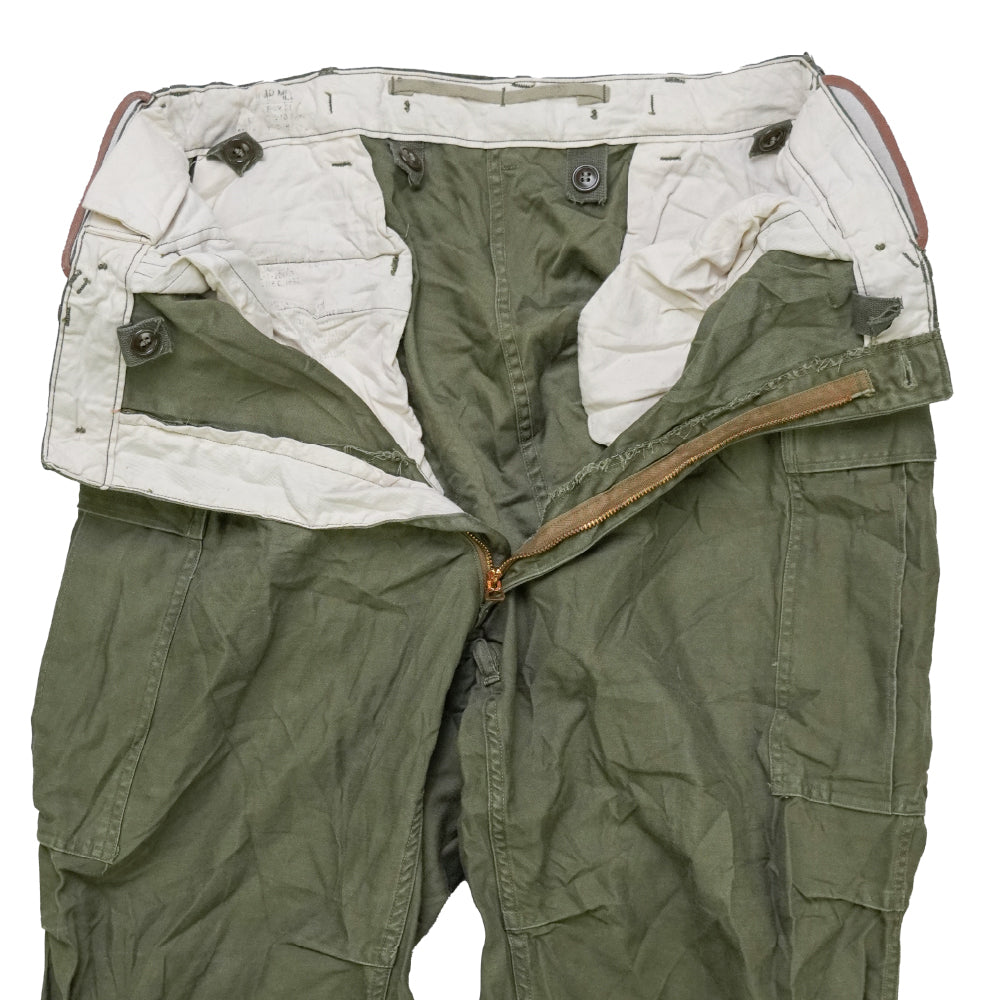 Authentic U.S. Army M-1951 field cargo trousers in olive, built to classic mid-century military specification. Constructed in durable cotton with a traditional cargo pocket layout.