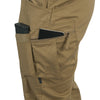 By judicious layout of the pockets, equipment can be placed close to the center mass, around the hips and waist. Front and rear pockets edges are reinforced to withstand constant movement of light or knife clips. Two Velcro-closed front pockets are big enough to carry a smartphone – or even an AR/AK rifle magazine. Thigh zippered pockets look flat – but its design allows pouches or wallets to be carried with ease.