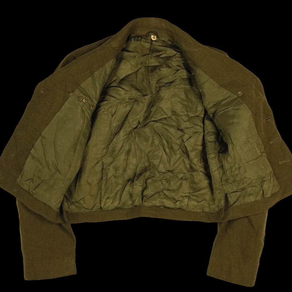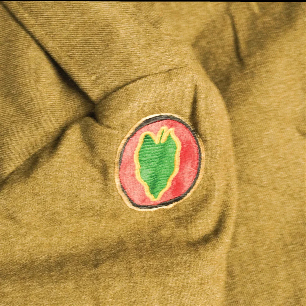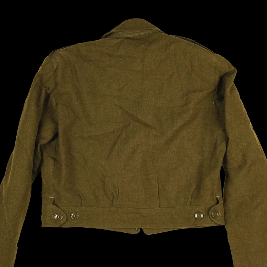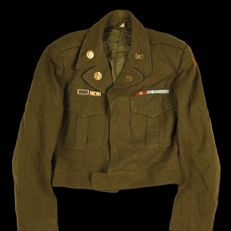 US M-1944 “Ike” jacket associated with the 24th Infantry Division. This is a short-waist military jacket in the WWII-era Ike jacket pattern.