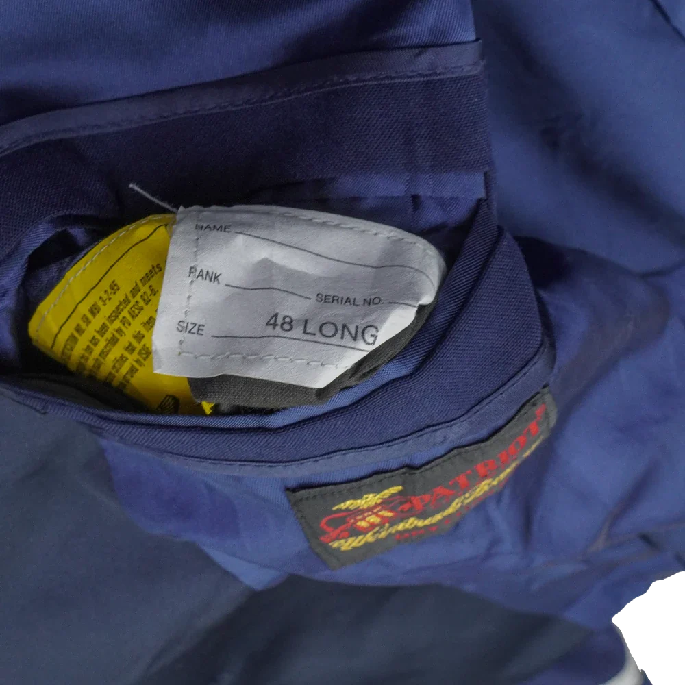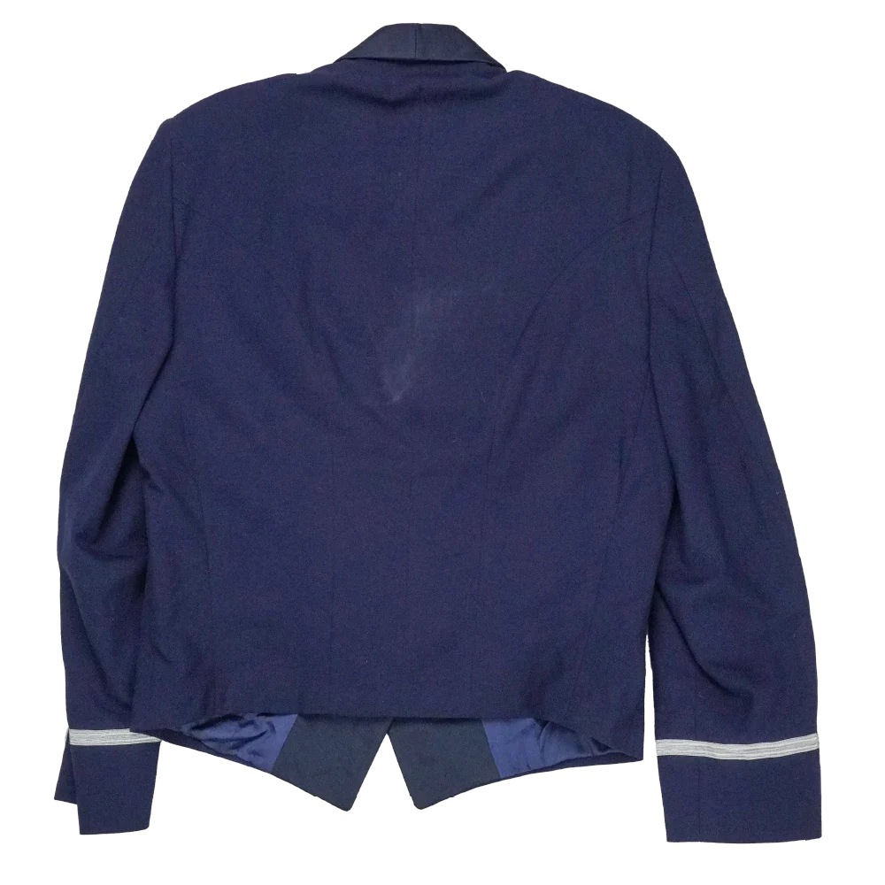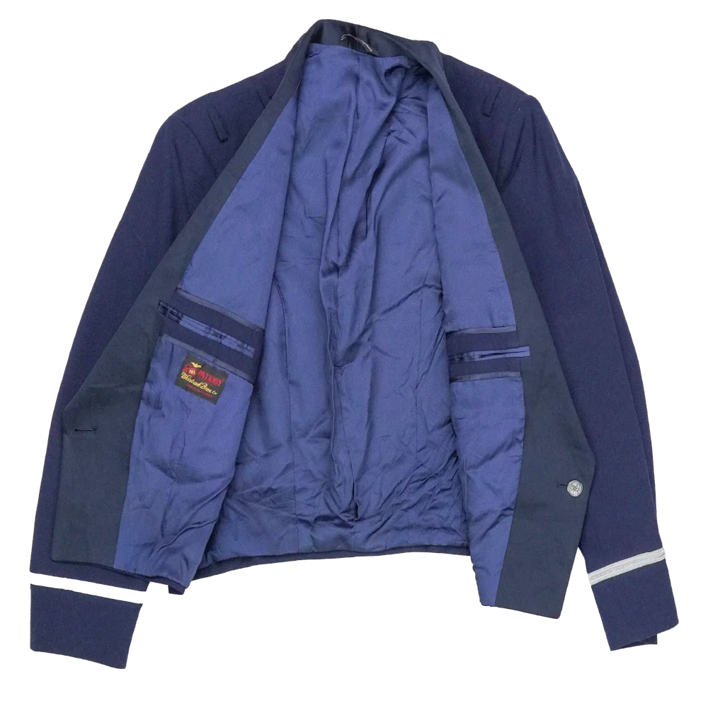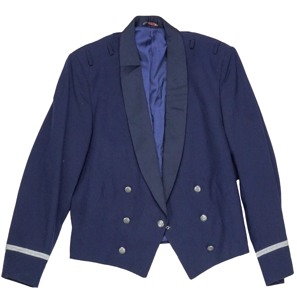US Air Force officers mess dress jacket in formal service style. Features a structured tailored cut with a front button closure and smooth outer finish.