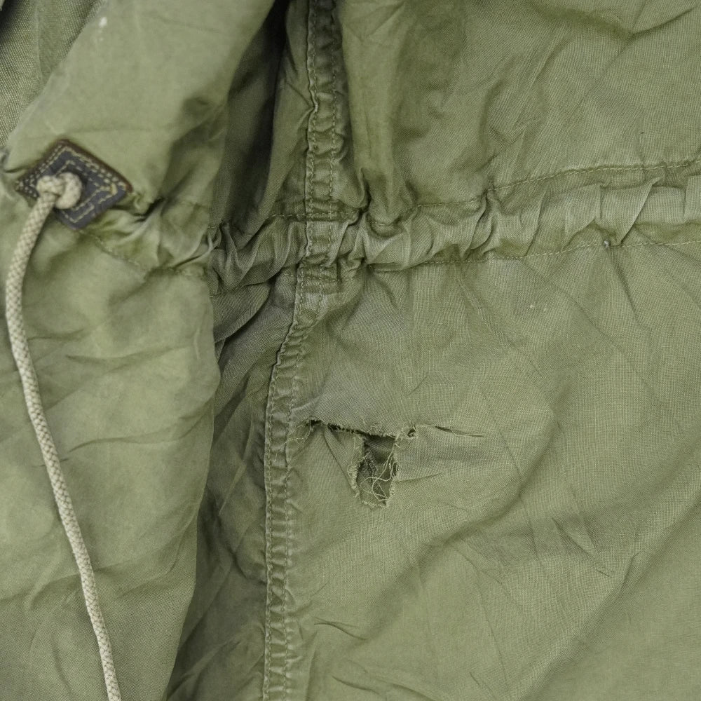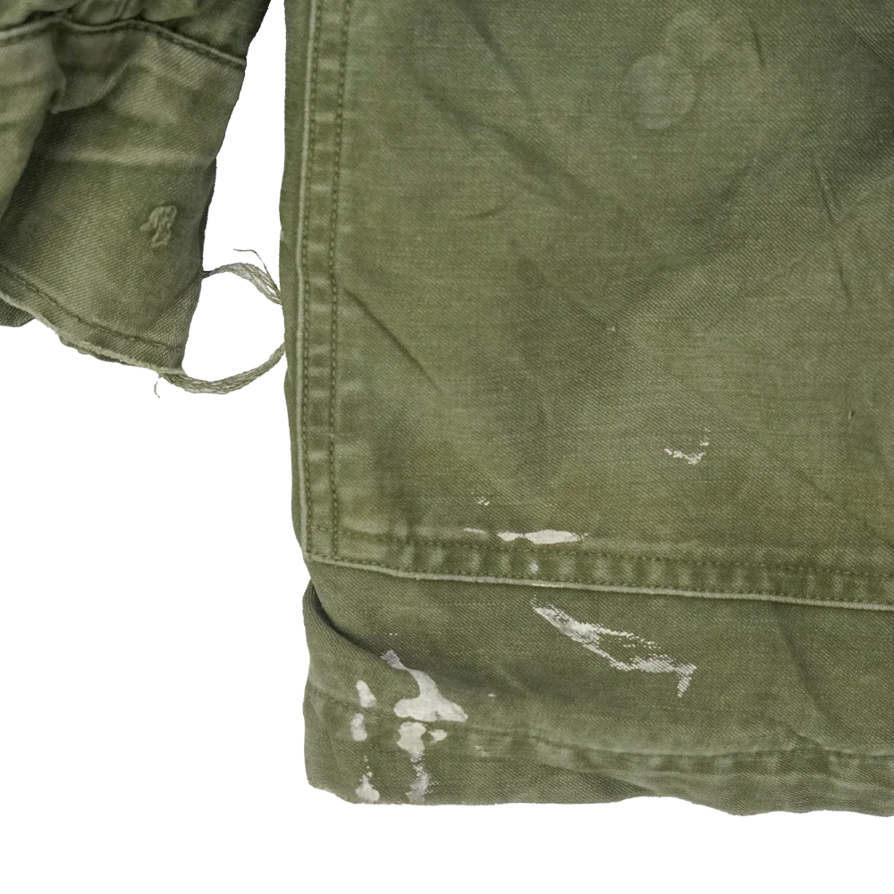 Value Grade condition with a tear through the back into the lining, fraying on the cuffs, and paint at the base of the jacket.