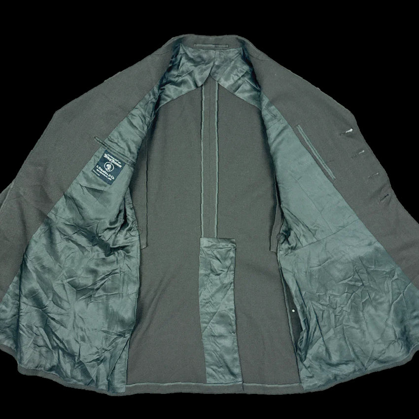 US Army officer dress jacket from the 1950s. Manufactured by L Strauss & Co, Indianapolis. The jacket features multiple pockets and an integrated waist belt.