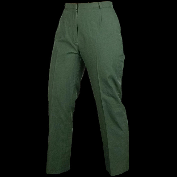 These US Army dress uniform trousers are a women's cut and sold as a mix of models over time since issued - the compositional percent and fabric weave varies and are picked at random. Some of these may not be hemmed and as dress trousers, sit a bit higher on the waist - we recommend sizing up.
