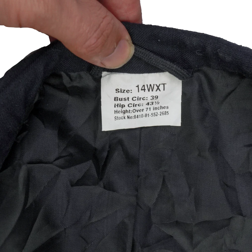 US Army women's service dress jacket in very good used condition. Structured formal jacket with a tailored fit and front closure design.