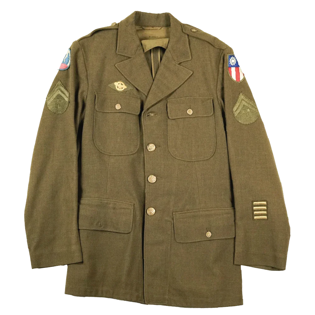 Features CBI (China, India, and Burma), and Southeast Asia Command unit insignia, Technician 5th Grade rank and 4x 6th overseas service bars.
