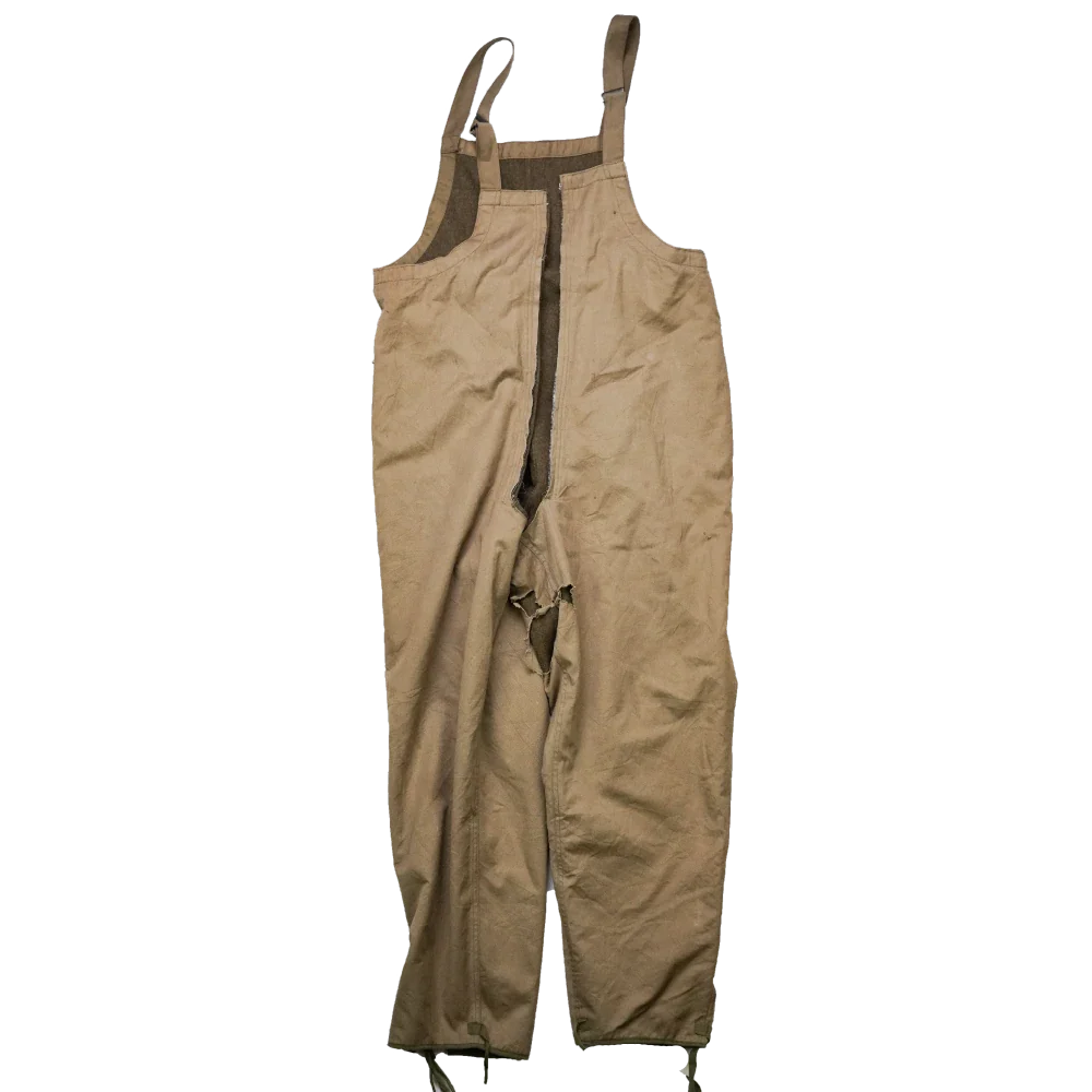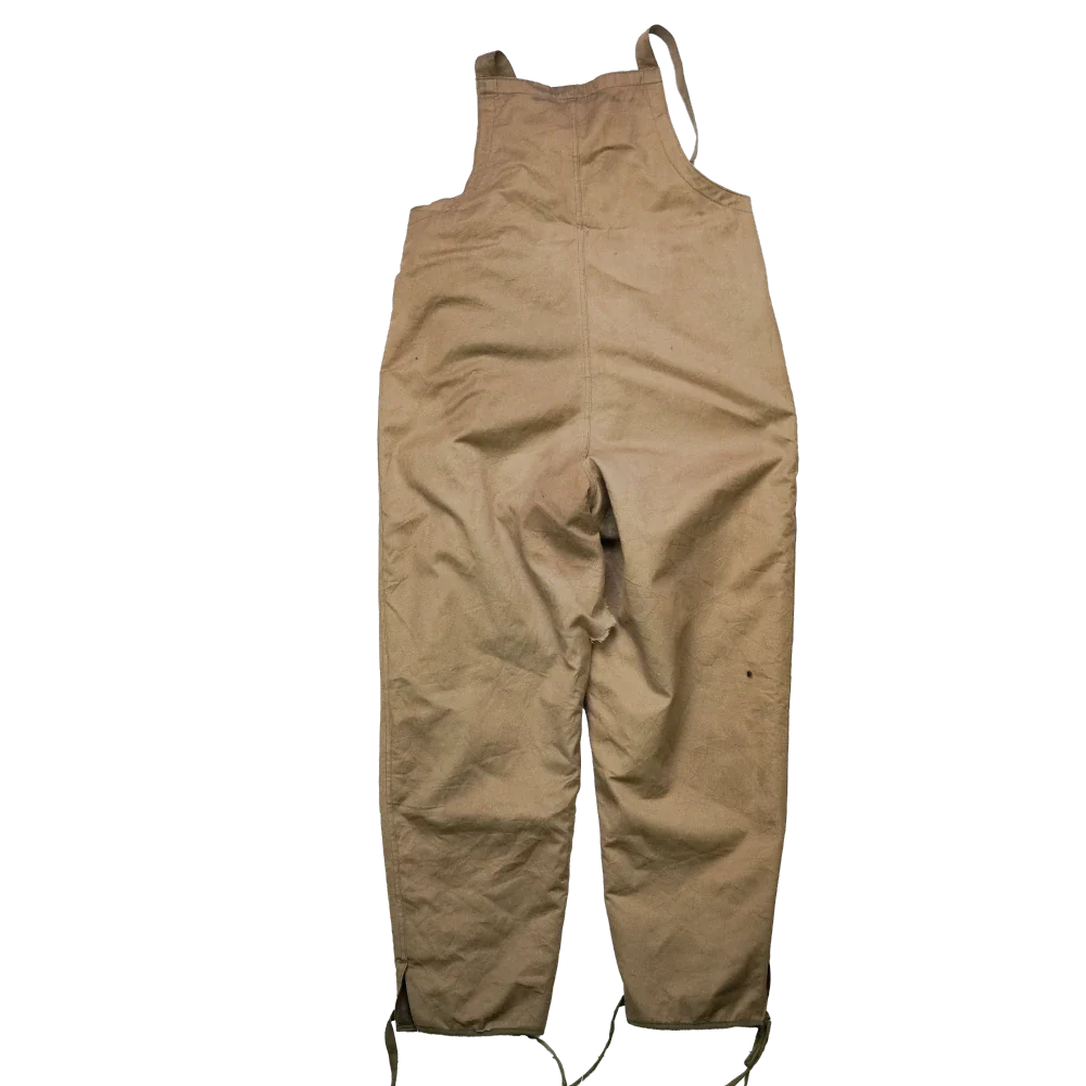 US First Pattern WW2 Tanker bib overalls. Bib-style overall construction with a front zip closure.
