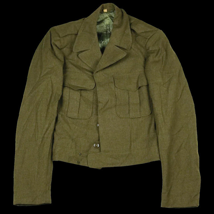 US M-1950 Wool Ike Jacket in surplus condition. This is a wool military dress-style jacket with a dated manufacture label.