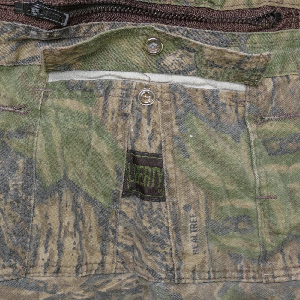 US made Liberty bib overalls in Realtree camouflage pattern. Traditional bib-front design with shoulder straps and full-length legs.