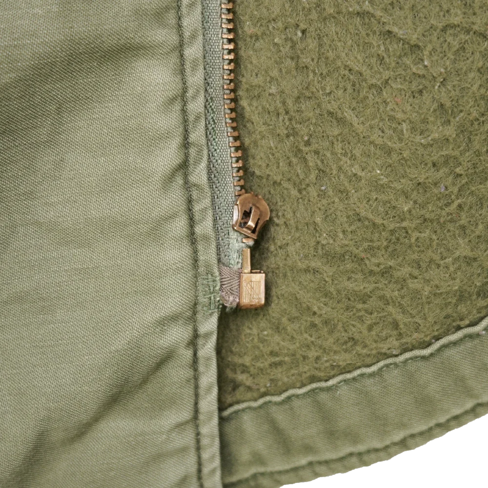 Condition is Used/Fair. Missing three buttons, stains present on the arms, no label, and the zip handle is missing.