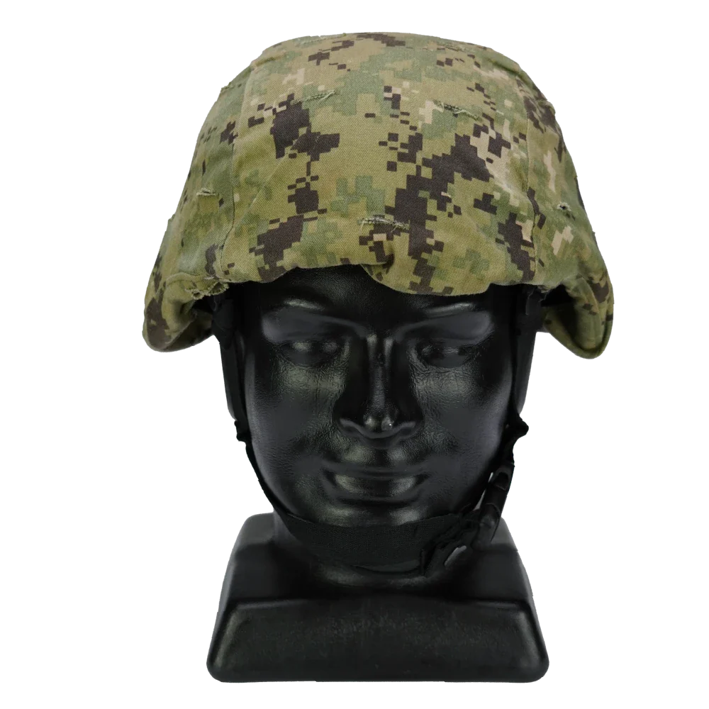 US Navy helmet cover in AOR2 camouflage pattern. Constructed from 50% nylon / 50% cotton rip-stop fabric.