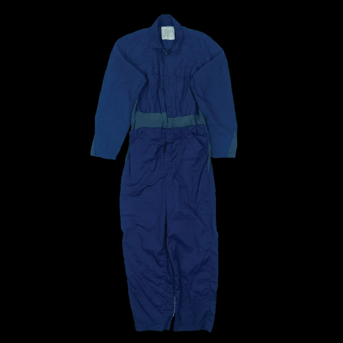 Utility coveralls manufactured for US Navy nuclear submarine use. Dated 1972. One-piece construction with chest pockets and an integrated front closure system.