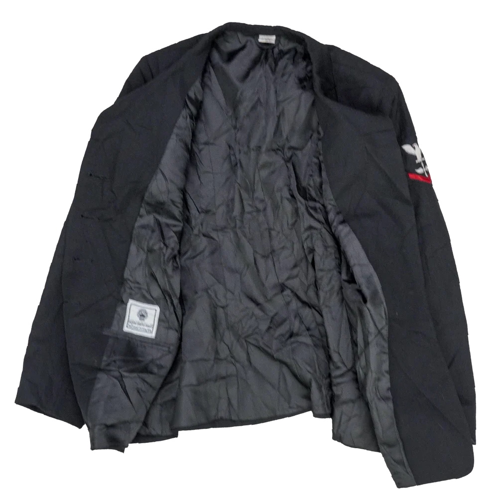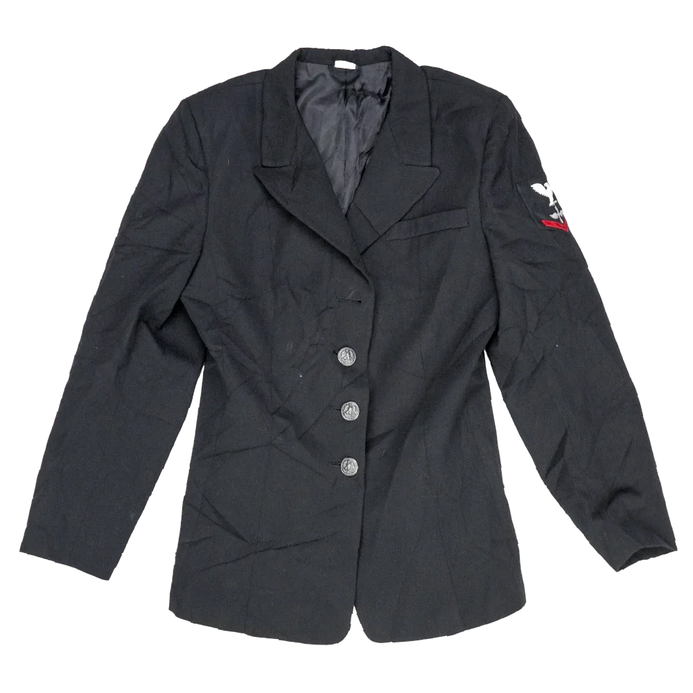 US Navy women's service dress jacket in standard issue design. Structured formal jacket with a tailored fit and front button closure.