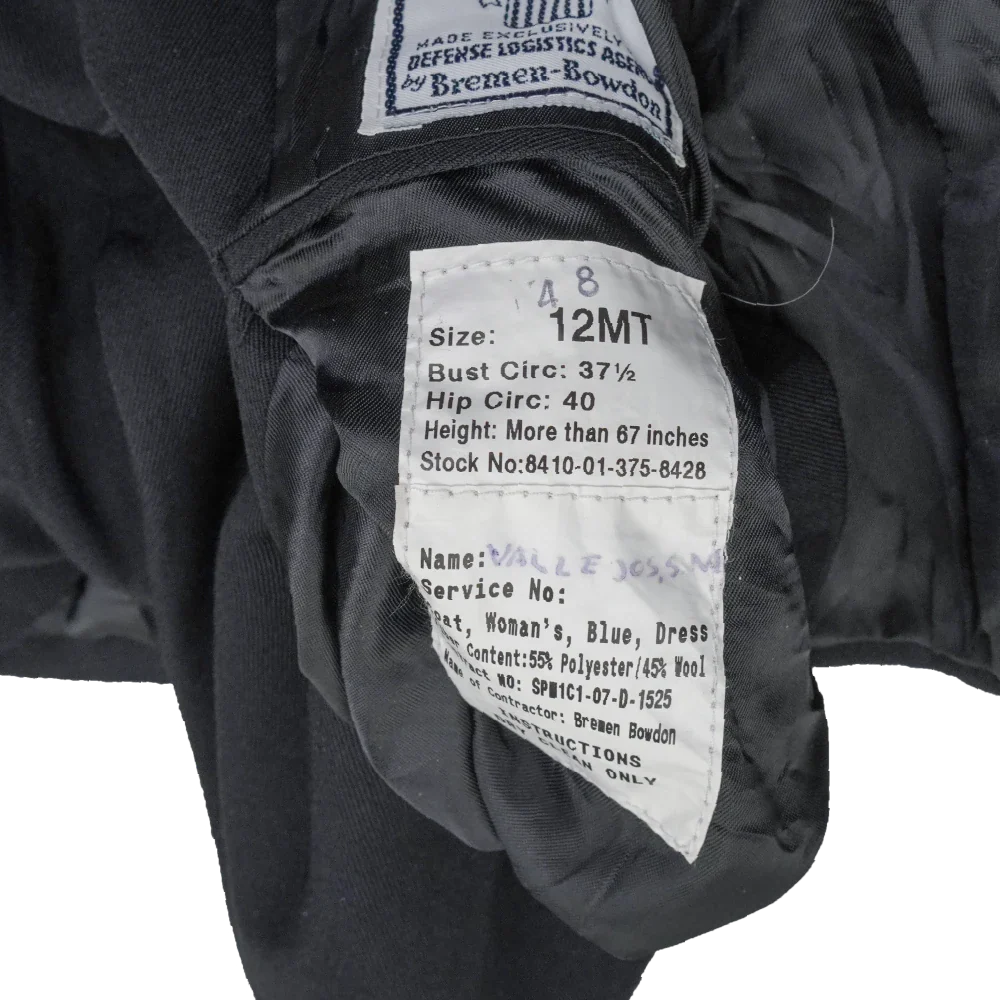 Internally labelled for Defense Logistics Agency issue with contractor Bremen-Bowdon. Fabric content label indicates a polyester and wool blend.