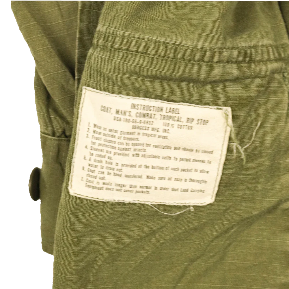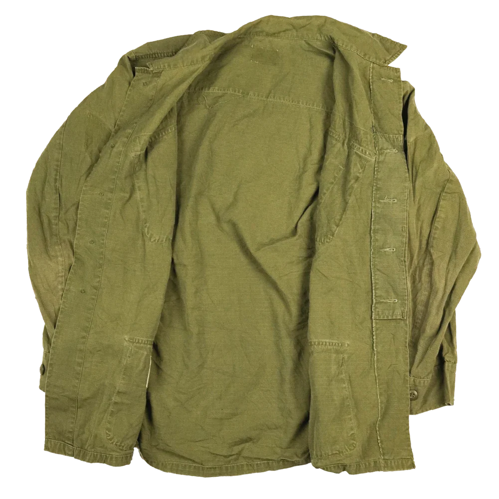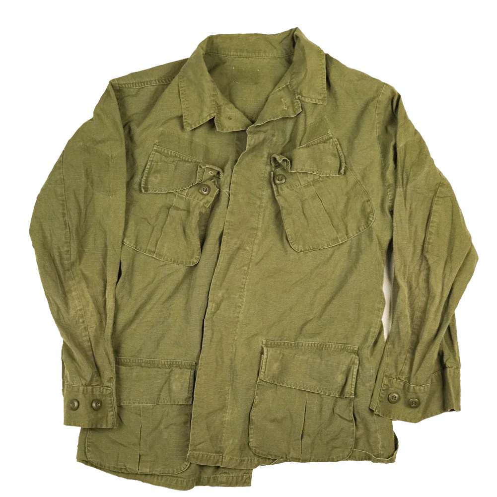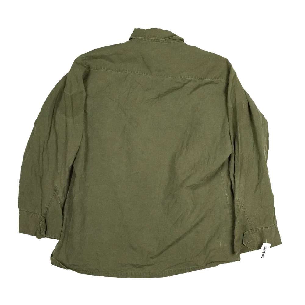 US Vietnam era OG-107 jungle shirt in Small Regular sizing. Military surplus shirt with period-correct styling and standard field construction.