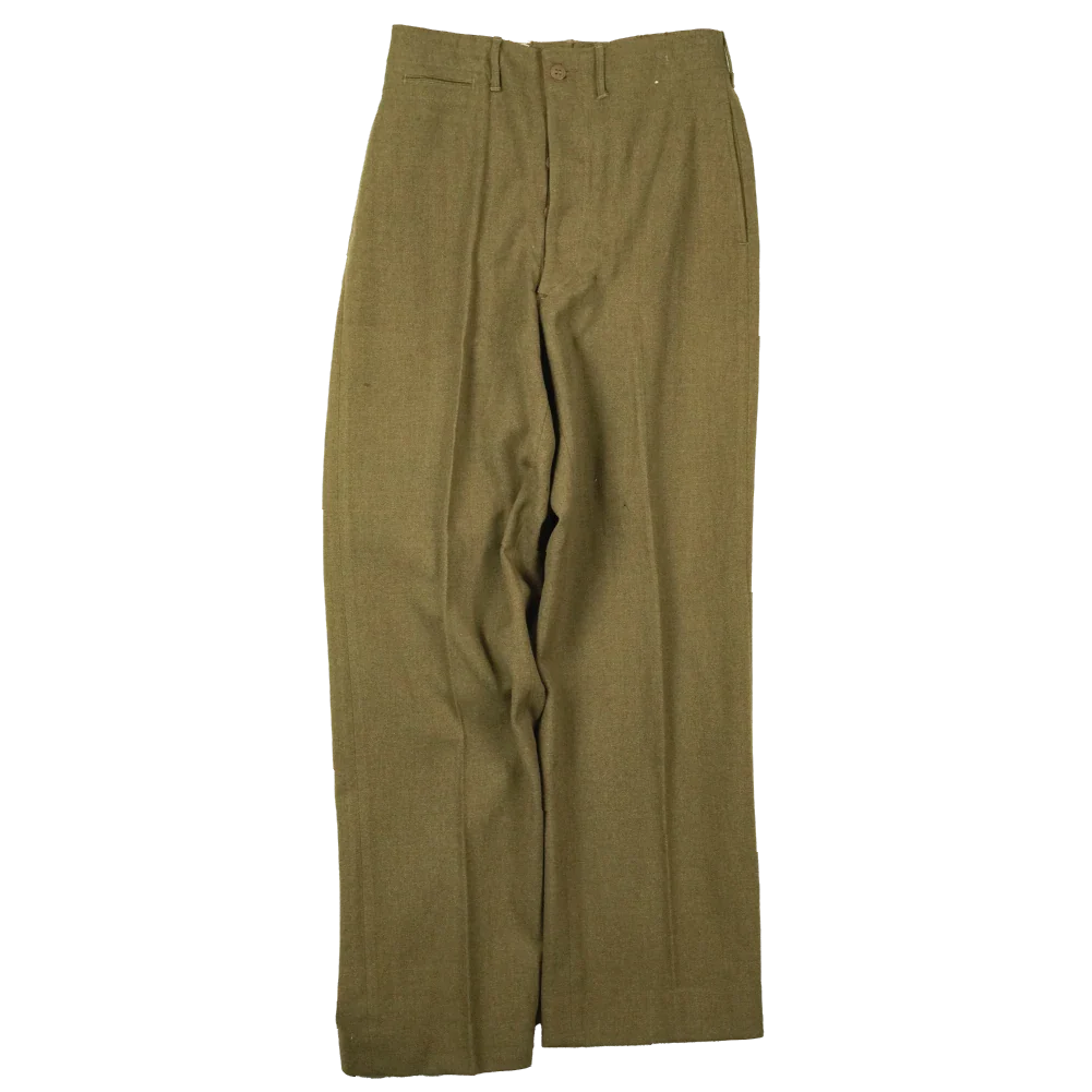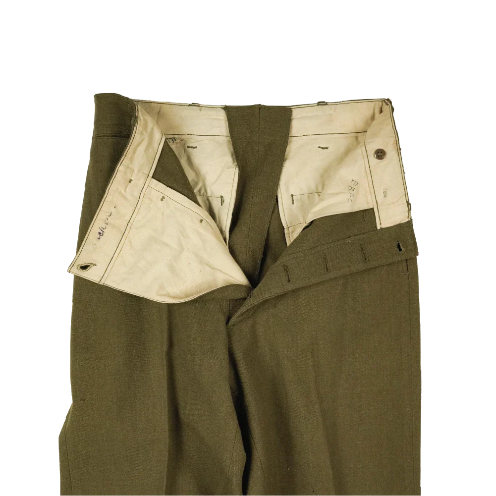 US M1937 wool trousers from the World War II period. Constructed from heavy wool fabric with a straight-leg cut typical of the model.