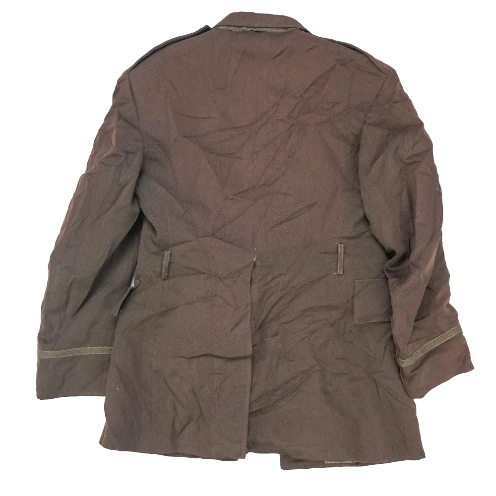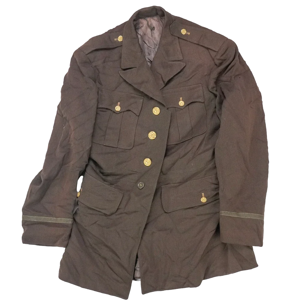 US WW2 Officers Service Dress Jacket in large sizing. This is a formal wool service dress jacket with a structured cut, button front, and lined interior.