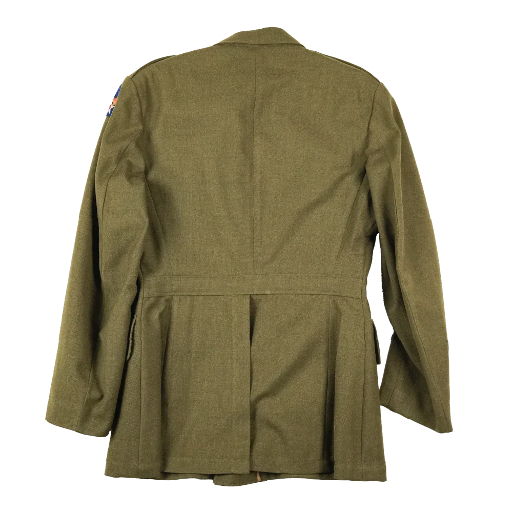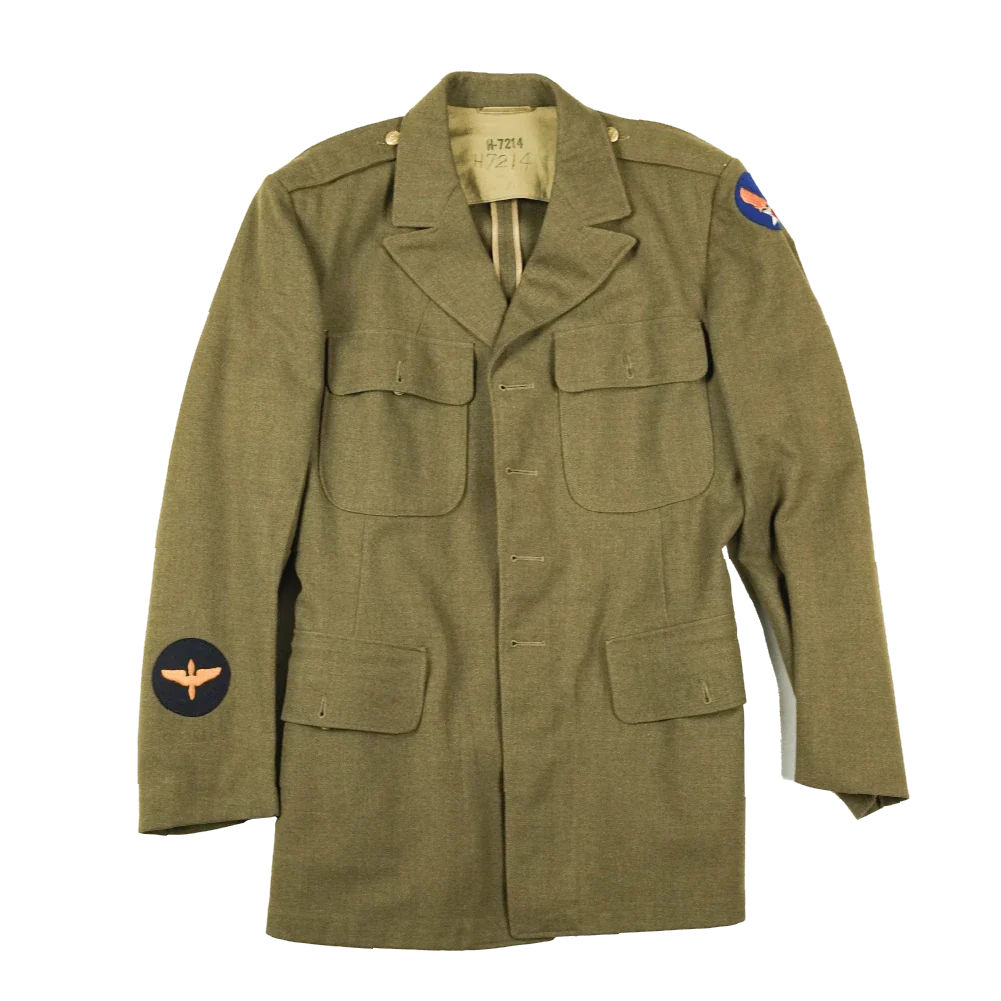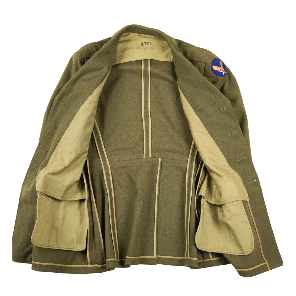 Wool service dress jacket attributed to the US Army Air Forces from the Second World War period. Constructed in a dark service dress wool with a tailored cut and standard button-front closure.