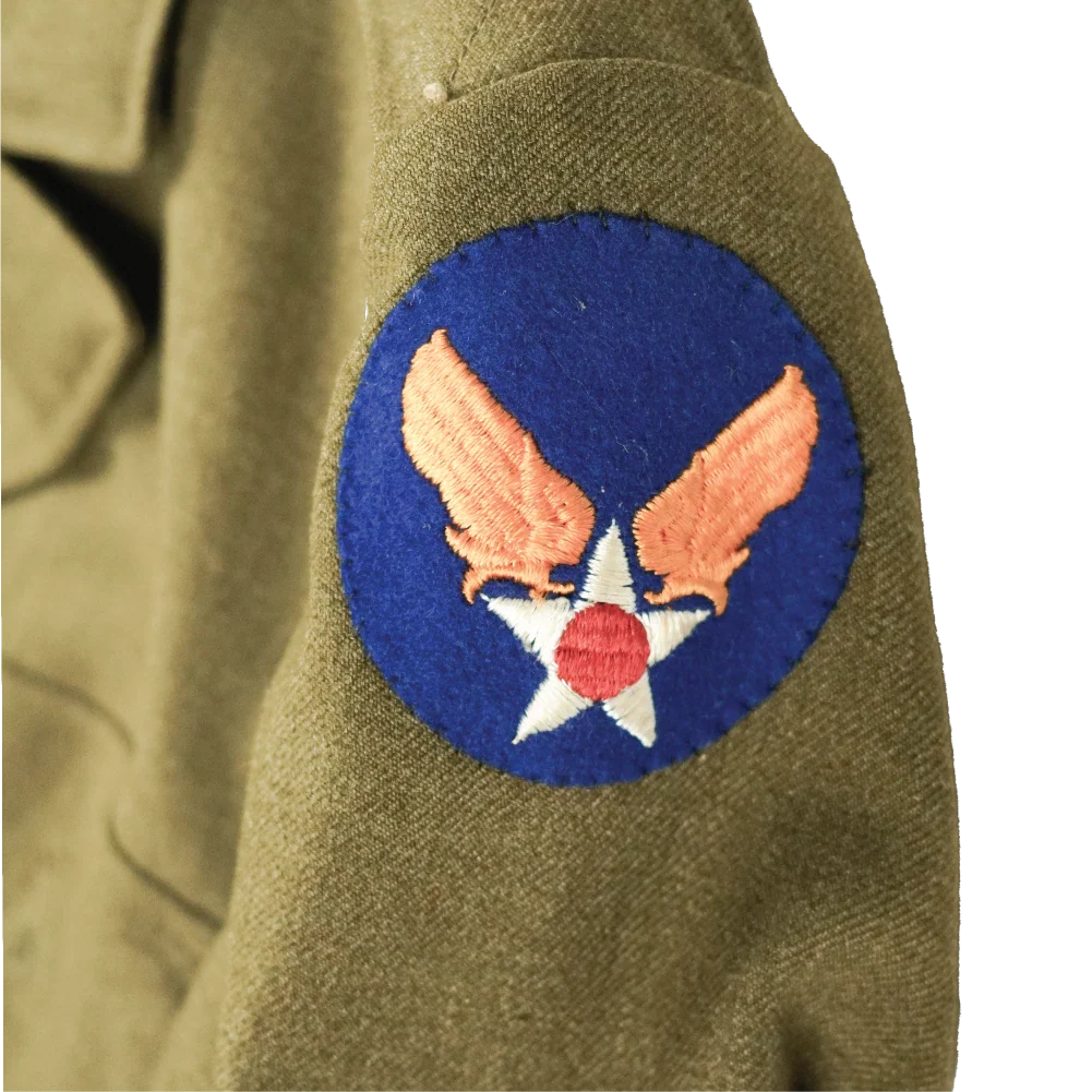 This example displays US Army Air Force and US Army Air Force Aviation Cadet unit insignia present on the jacket.