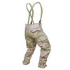 The trousers feature large cargo pockets with flap closures, adjustable leg openings with hook-and-loop fastening, and internal suspenders for support. Minor marks may be present consistent with Used/Good surplus condition.