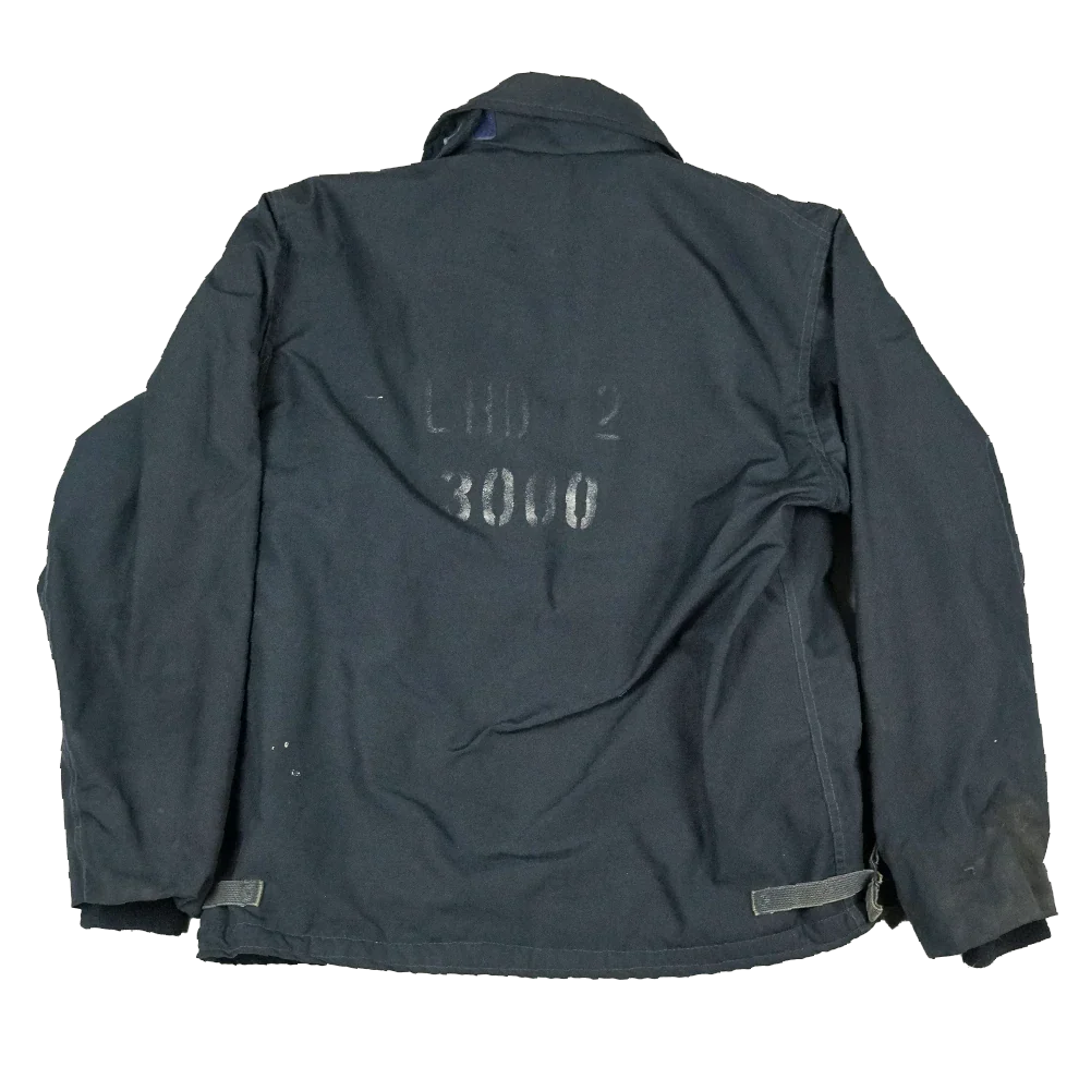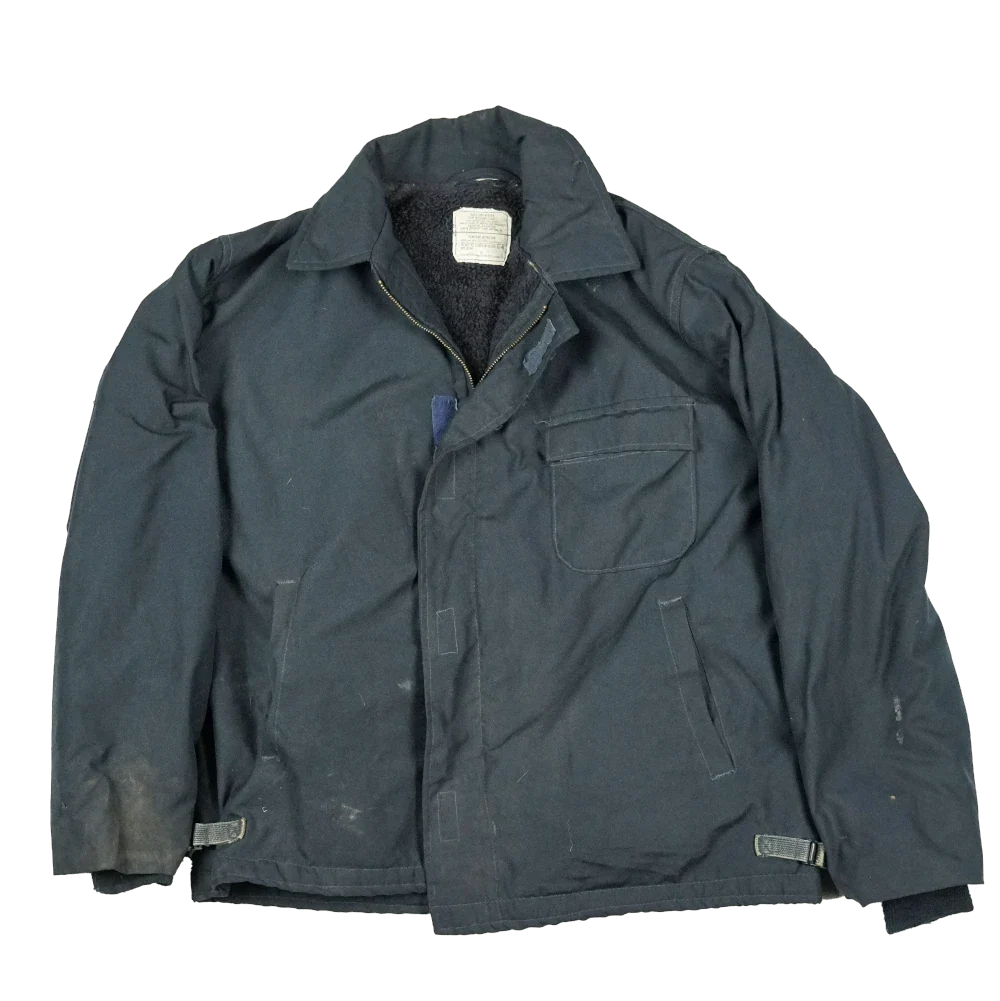U.S. GI cold weather deck jacket from the 1990s. Heavy-duty outer shell with a warm pile lining, zip front with storm flap, and utility pockets.