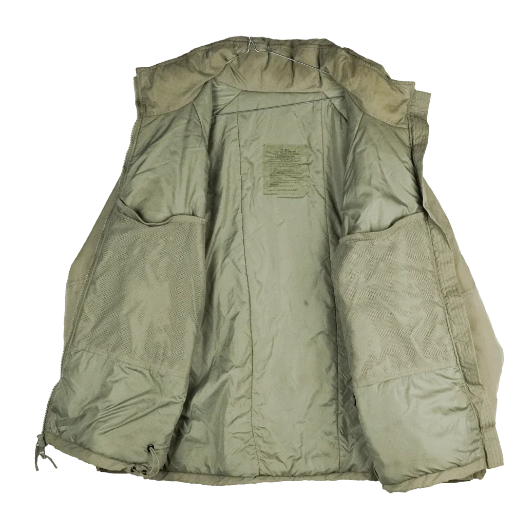 USGI ECWCS Gen III Level 7 parka in Medium Regular. This is a surplus cold weather parka shell with front zip closure. Manufacture date is 2007.