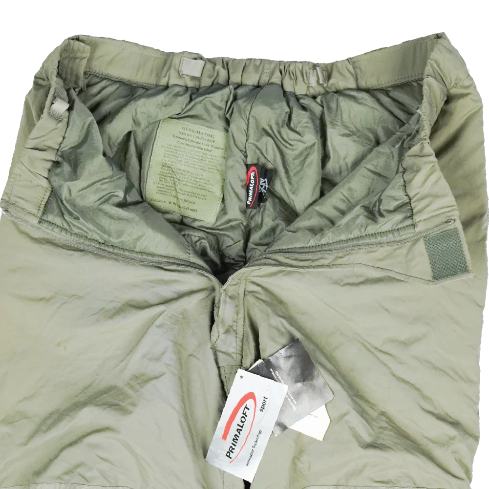 USGI ECWCS Gen III Level 7 insulated trousers. Part of the Extreme Cold Weather Clothing System, designed as an insulated outer layer.