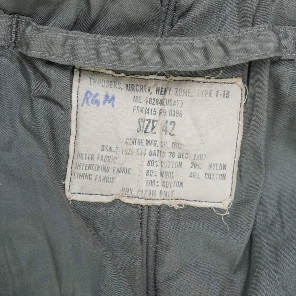 USGI F-1B Extreme Cold Weather Trousers in size 42". Designed as an extreme cold weather garment, this is a military F-1B pattern trouser with a 106cm waist. Manufacture date 1962.