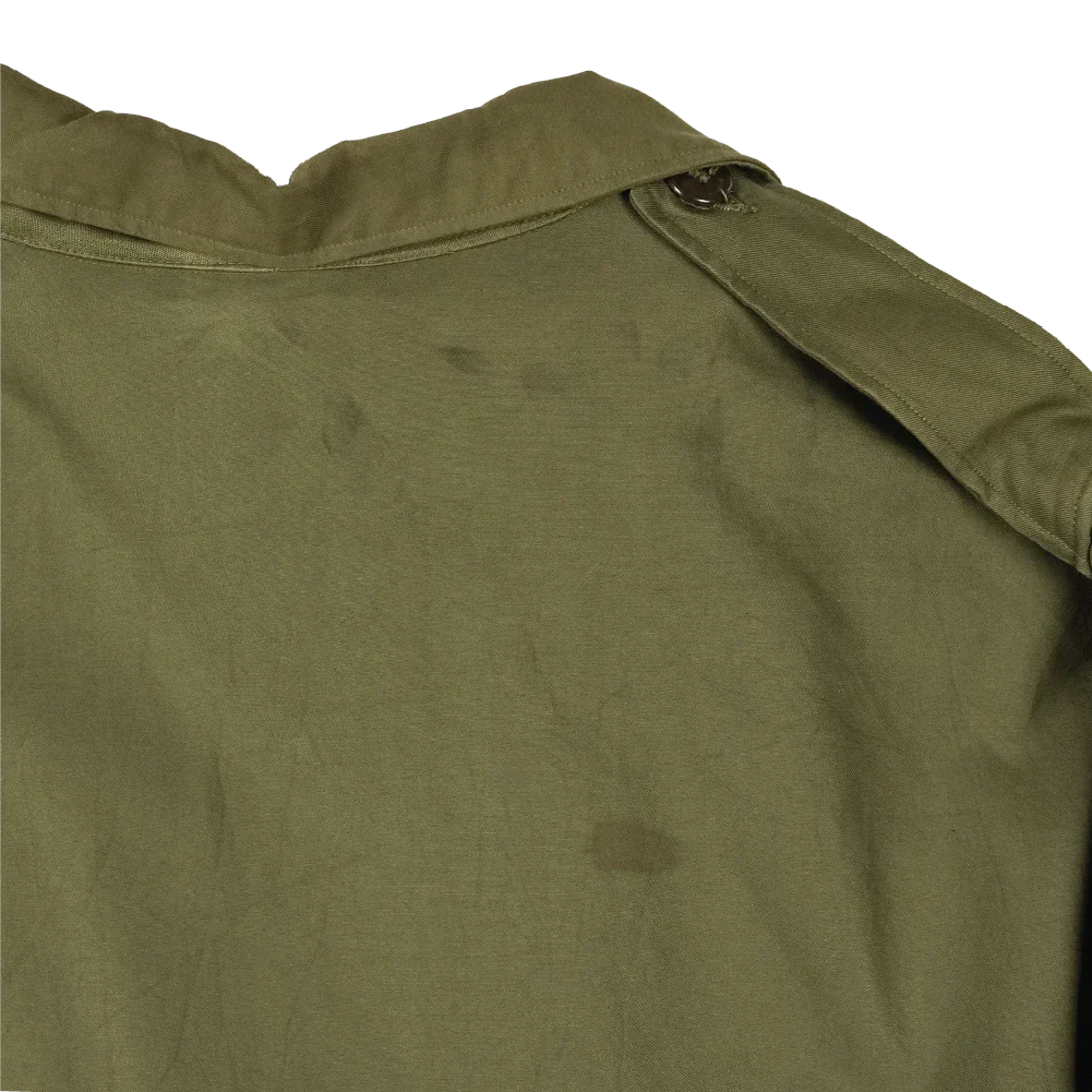 There is a small bit of white paint on the lower front, fraying on the right cuff, and small stains on the upper back. Brought in to replace the earlier M-1941 field jacket, this model set the precedent for all future field jackets used by the US armed forces and many other militaries over the world. The M-1943 saw service in the latest stages of World War 2, and into the 1950s during the Korean War.