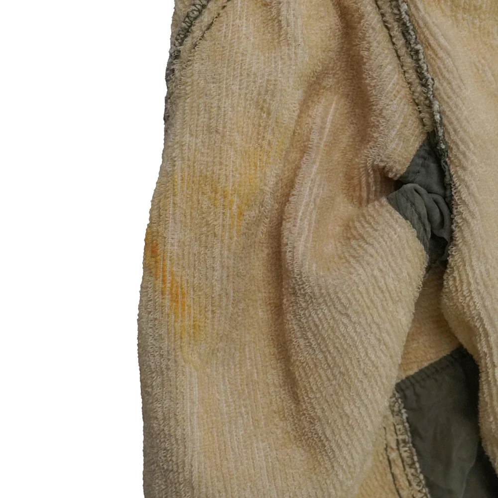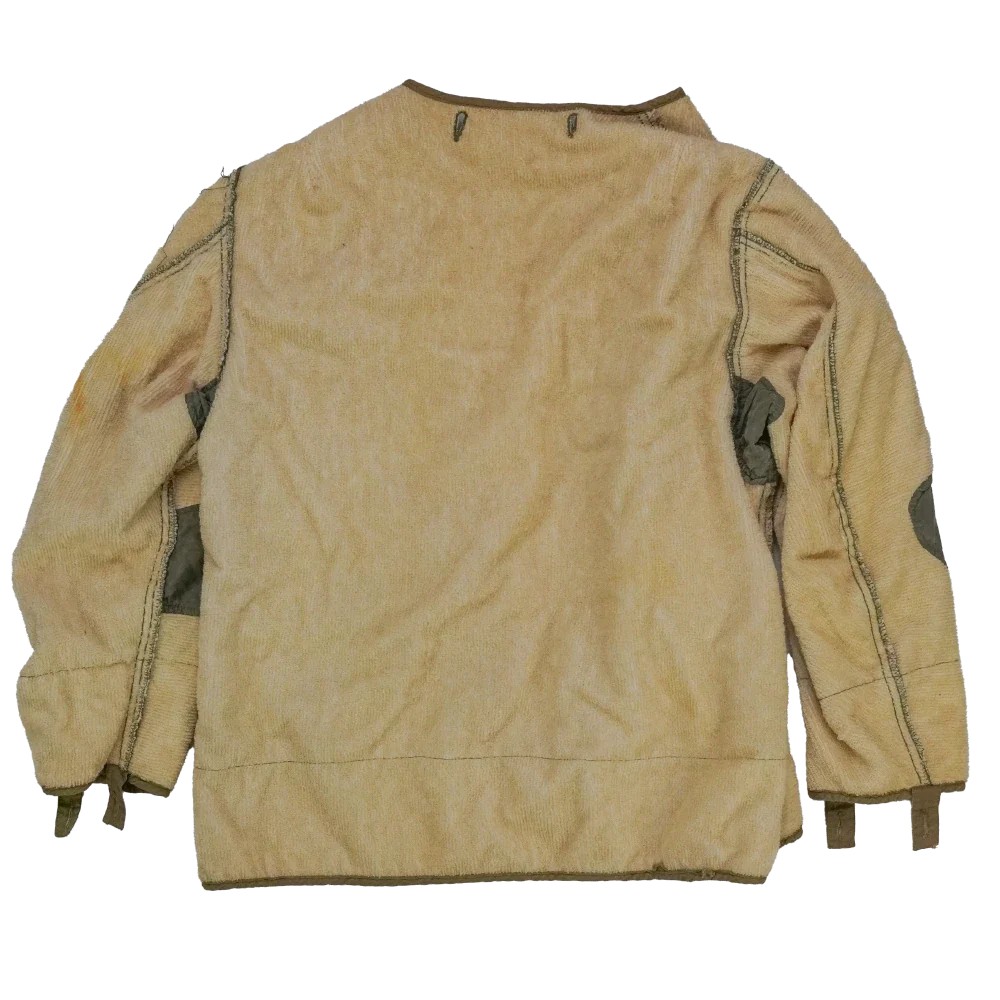 There is visible staining on the sleeve and general discolouration across the outer.