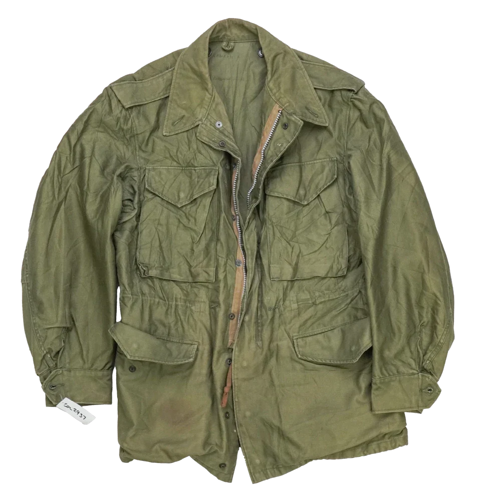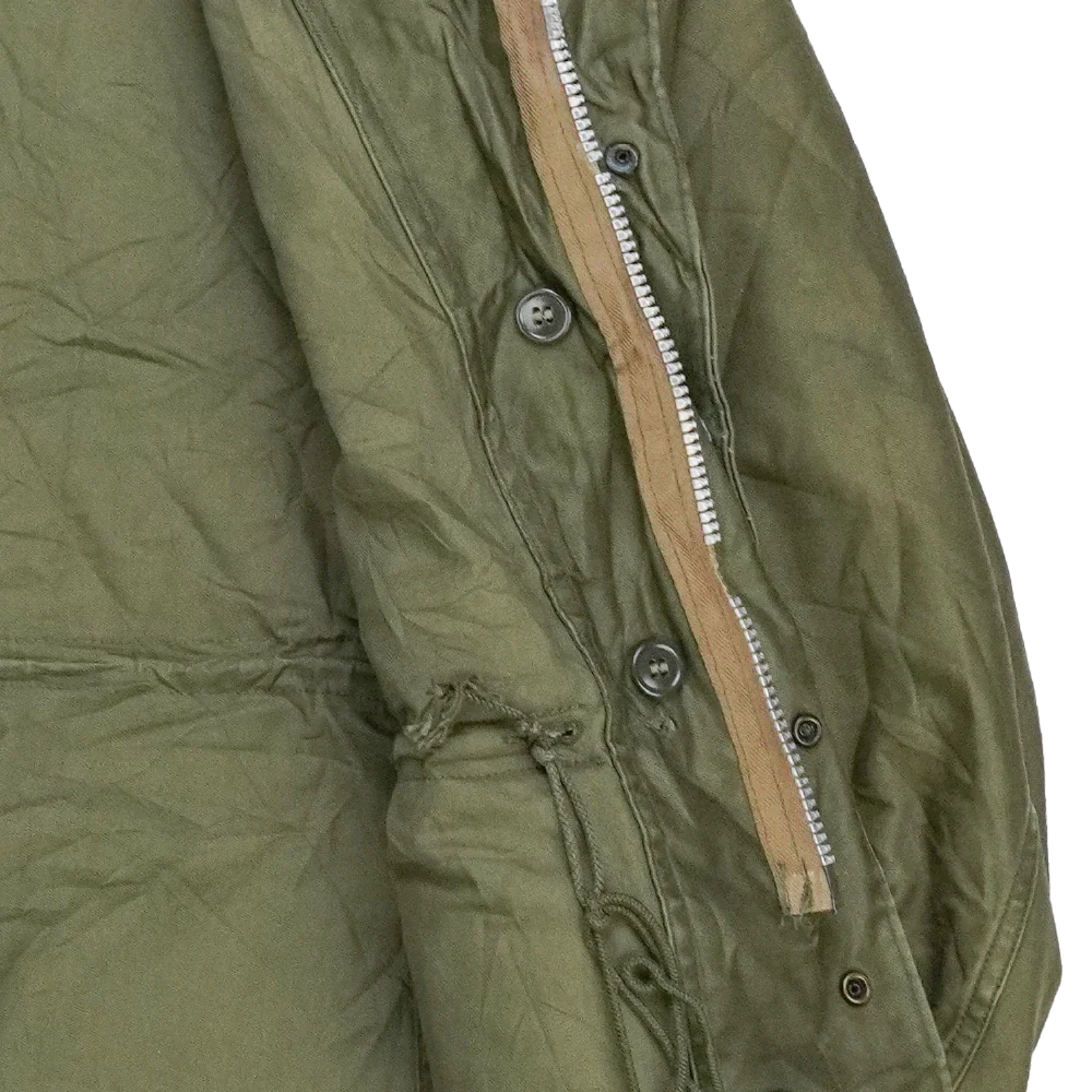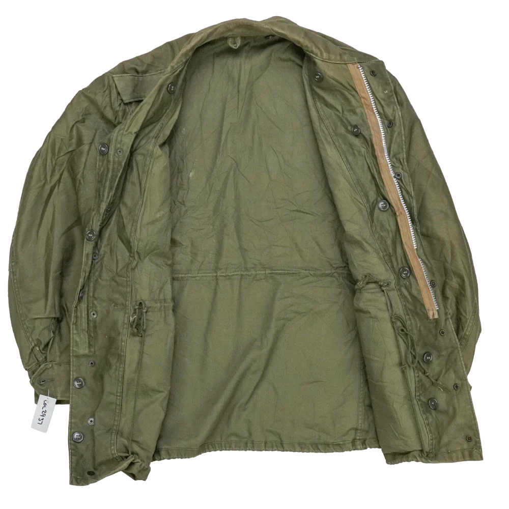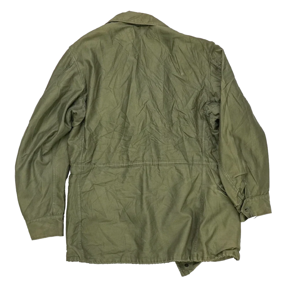 USGI M-1951 field jacket in Small-Regular sizing. Features a mid-length cut with front closure and multiple storage pockets typical of the M-1951 pattern.