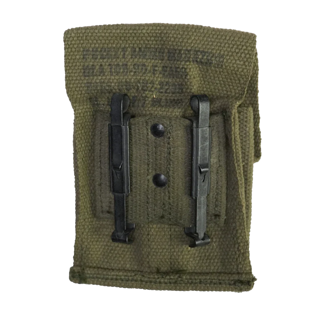 Designed for attachment to M56 webbing equipment. Used condition with general service wear consistent with age.