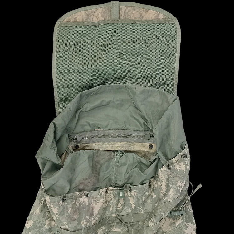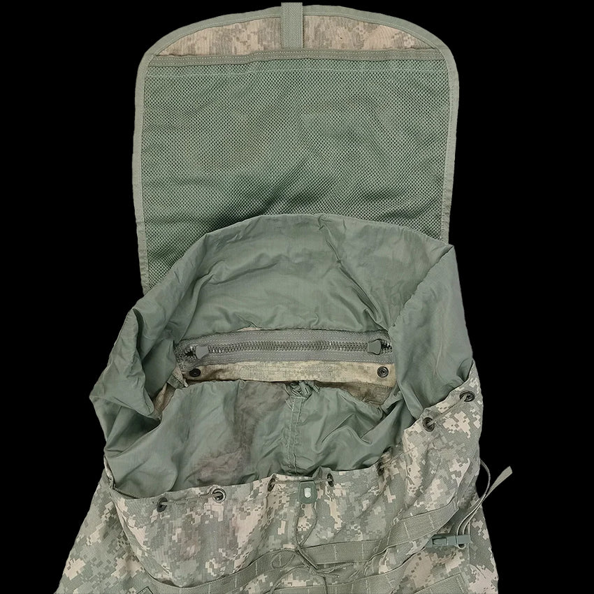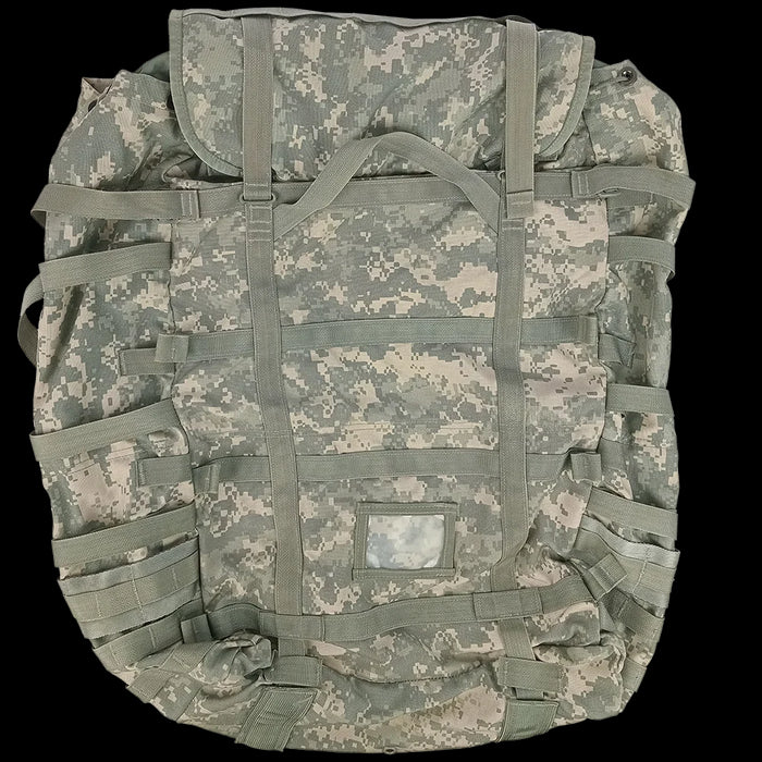 UCP pack, no straps, no frills. This is a large rucksack from the US Army. Officially known as 'Equipment MOLLE II Rucksack, Large'. This is a big pack, and if you like to punish yourself with extra weight to carry, expand this packs capacity with any manner of large and small pouches via the multiple PALS webbing straps.