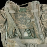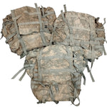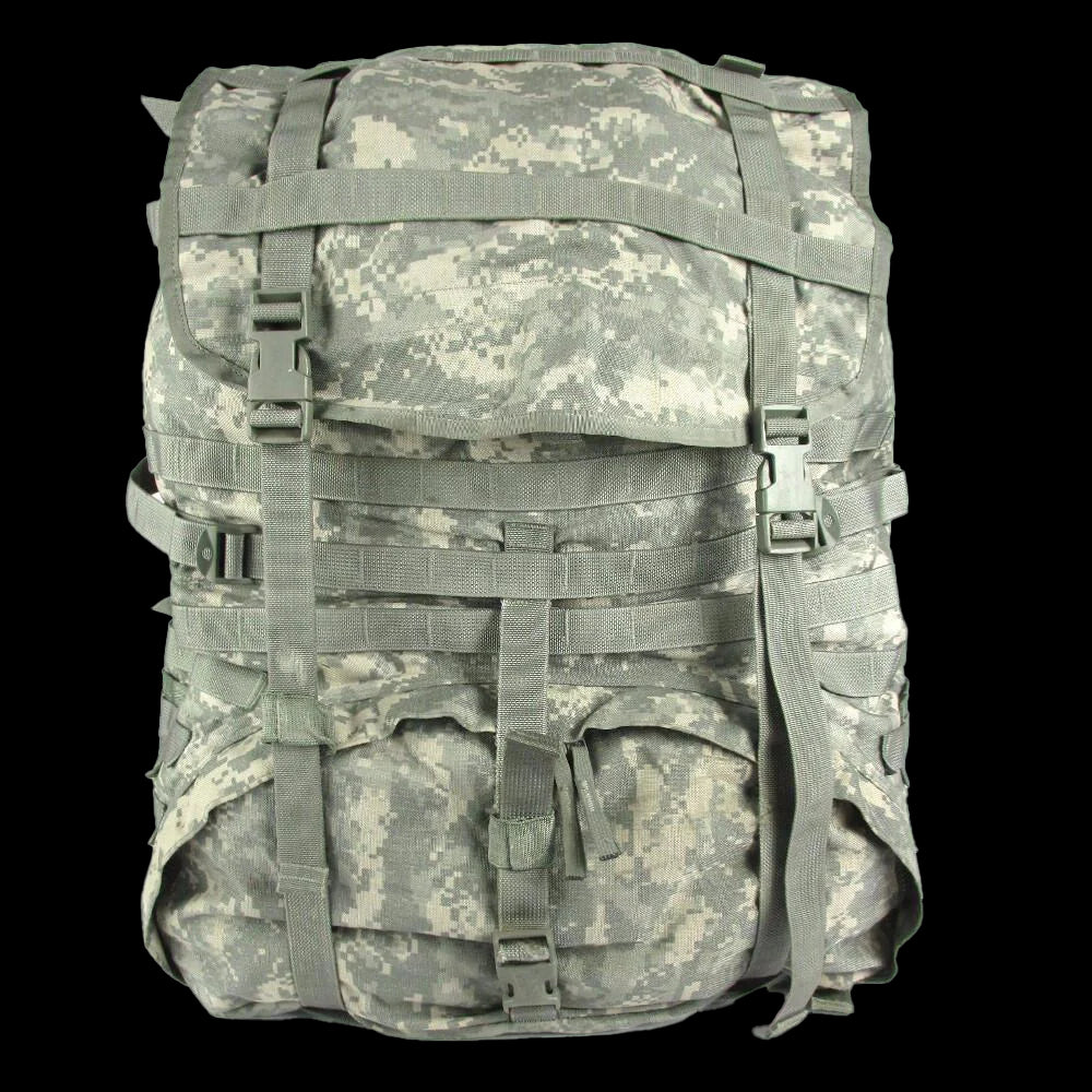 Ye olde Equipment MOLLE II Rucksack, Large. These big fellas have had a rumble helping the boys on Turtle Island lug their gear around. So much of a rumble, some have lost straps, gained some extra holes or lost some components. These should contain the frame, rucksack, shoulder straps and waist belt, all in varying conditions.