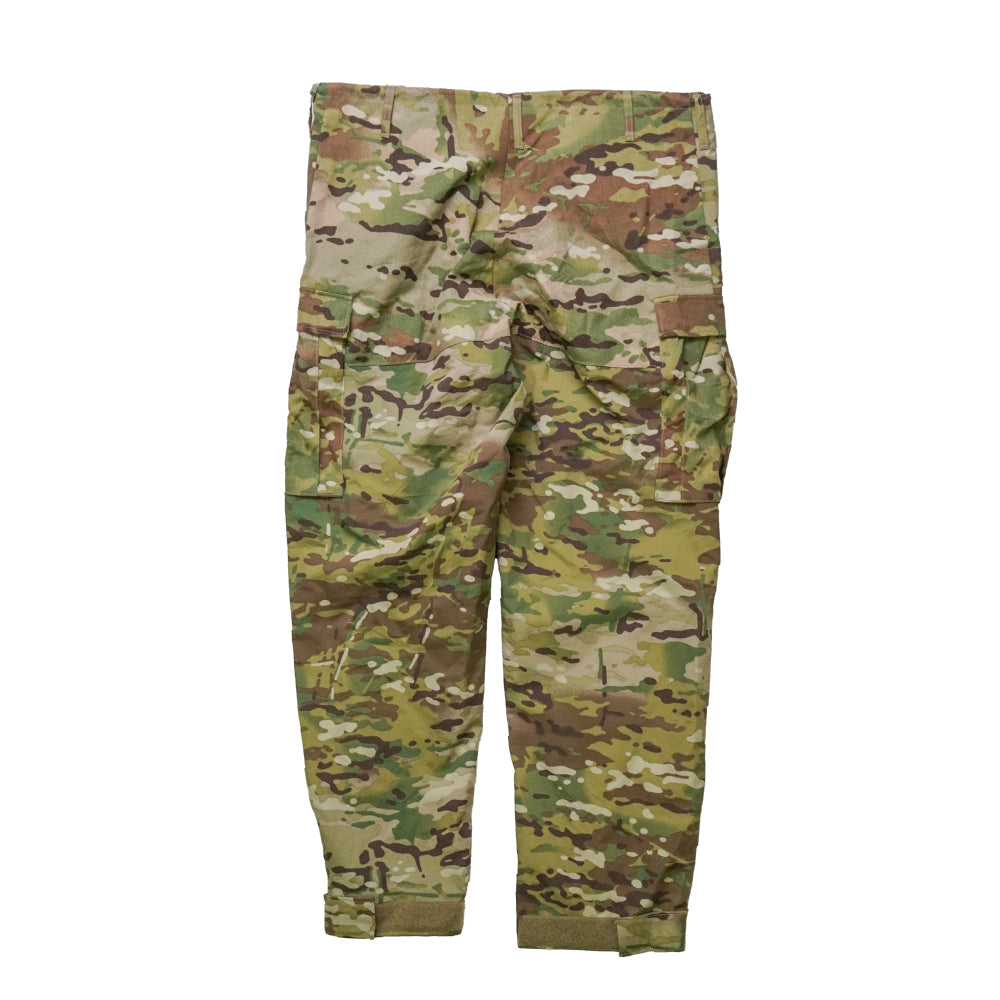 USGI OCP Gore-Tex APEC wet weather trousers in OCP camouflage pattern. Waterproof outer shell with full-length side zips for access and ventilation. Manufactured in 2016.