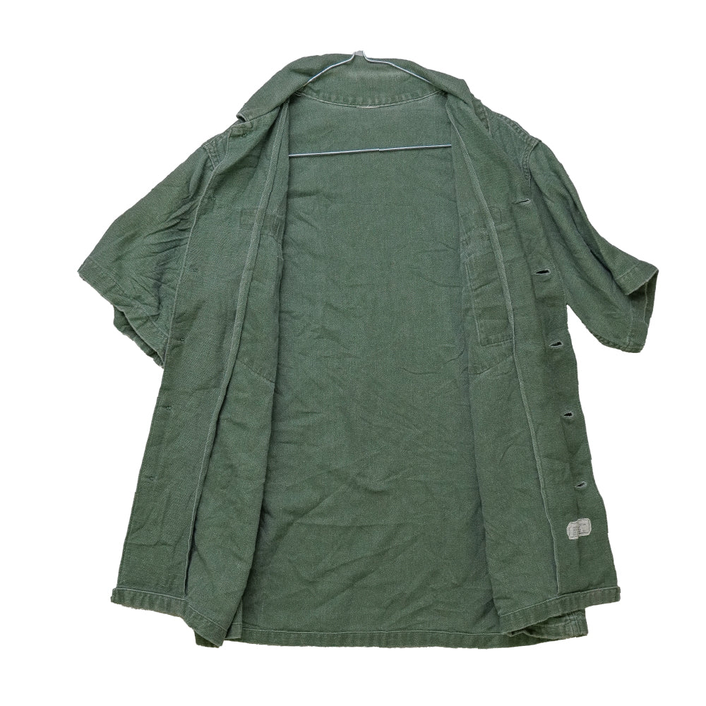 USGI OG-107 short sleeve utility shirt. Classic button-front design with chest pockets. Manufacture date 1969.