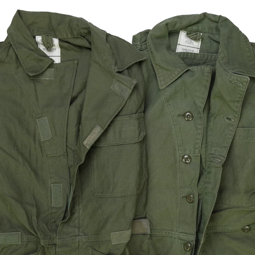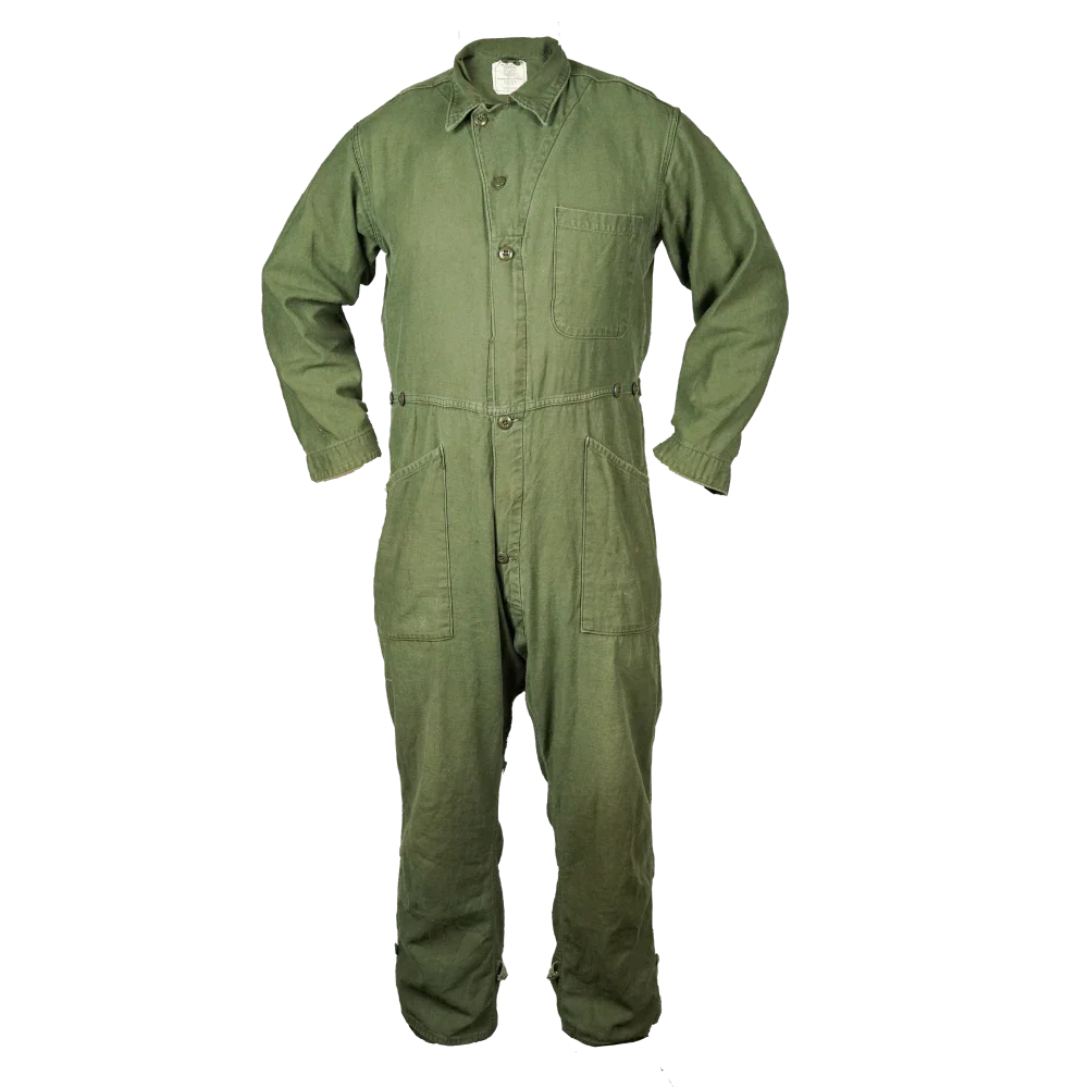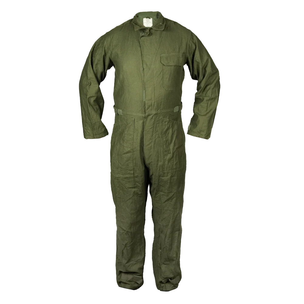 USGI mechanics overalls in olive drab. Cotton construction with a simple, utilitarian design.