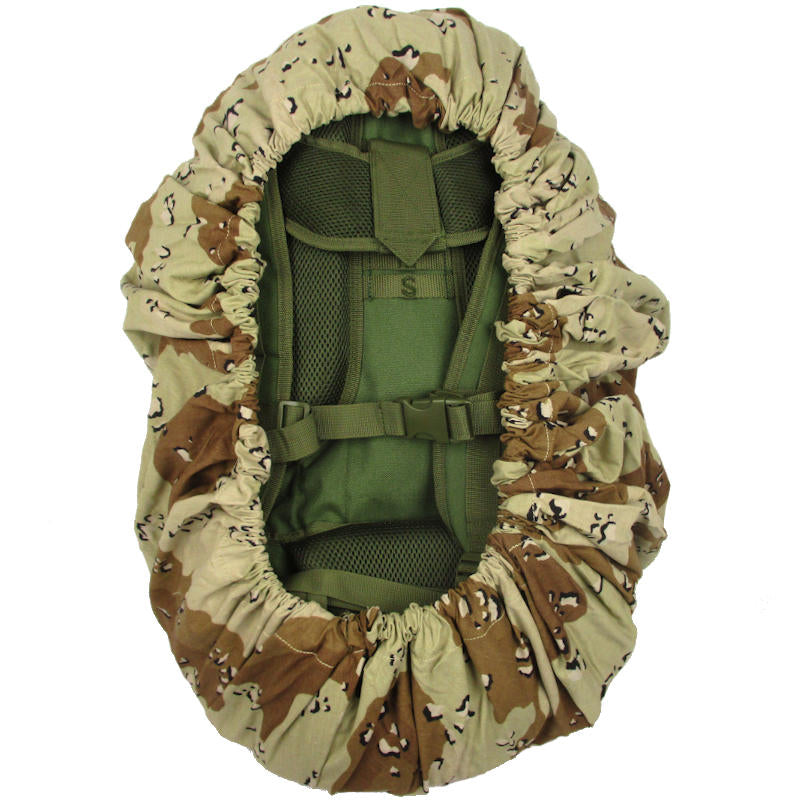 US Army ALICE pack cover in 6 colour desert pattern, made from nylon fabric. Designed to fit over ALICE packs with an elasticated edge for a secure hold.
