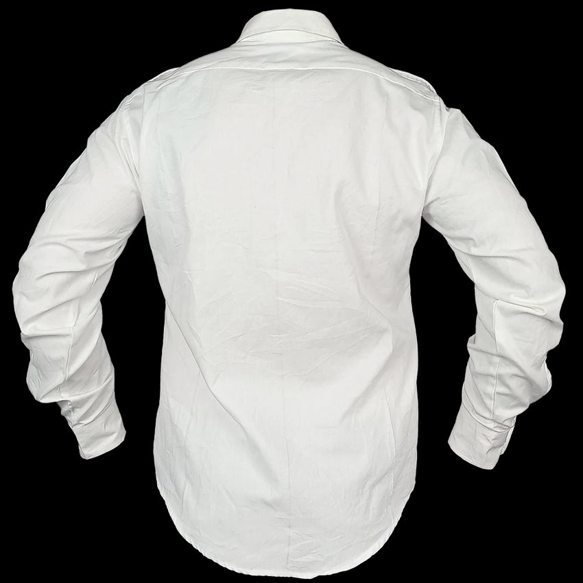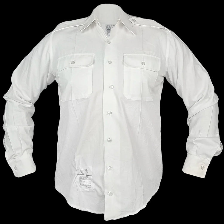Practical utility meets professional. These more formal white shirts are from various ages, across US branches. These long sleeved Service Uniform shirts will get the job done and have epaulettes, buttons up front and a flattering cut.