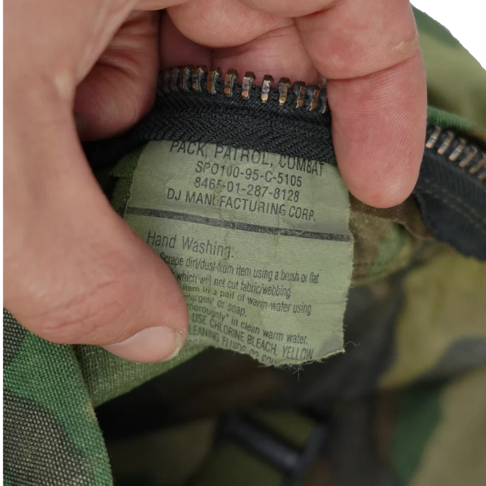 USGI Woodland Combat Patrol Pack. Woodland camouflage patrol pack with a 1995 manufacture date.