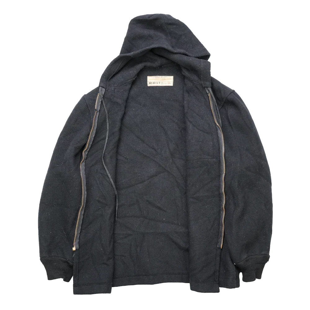 United States Military Academy wool hoodie dated 1960. Features an embroidered “Class ’64” marking on the front pocket. Constructed from wool with a pullover-style design.