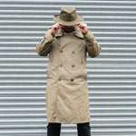 These classic cut trench coats in polyester/cotton are hard to beat and have a place in almost every wardrobe. These Man's All Weather Coat from the US Marine Corps, in ''pewter'', are a medley of khaki/tan/grey-beige colourways.
