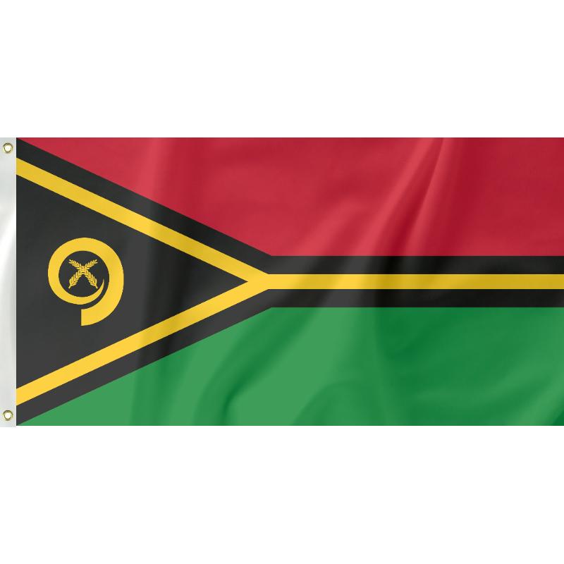 Vanuatu adopted their flag in 1980 after achieving independence from the United Kingdom. The green represents the lush islands, the red representing the blood of men, and the black representing the ni-Vanuatu people. The yellow shape represents the light of the christian gospel going through the pattern of the islands of the Pacific Ocean.