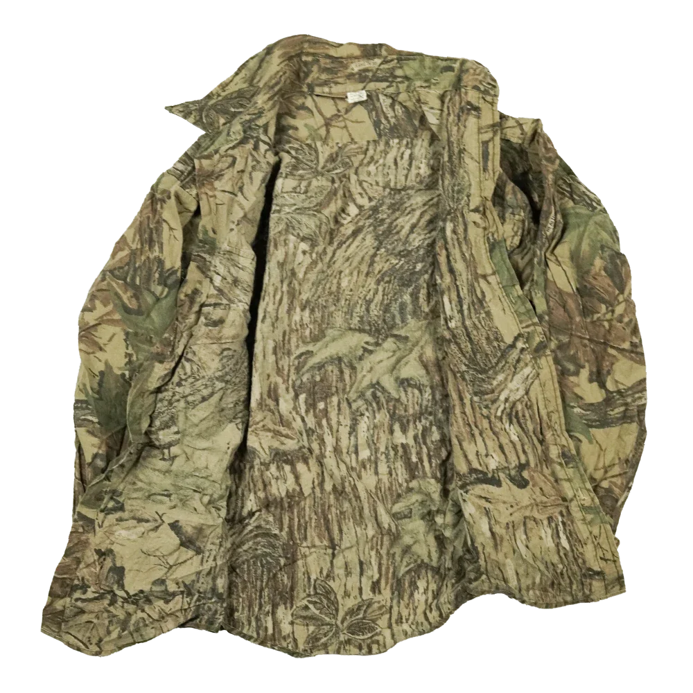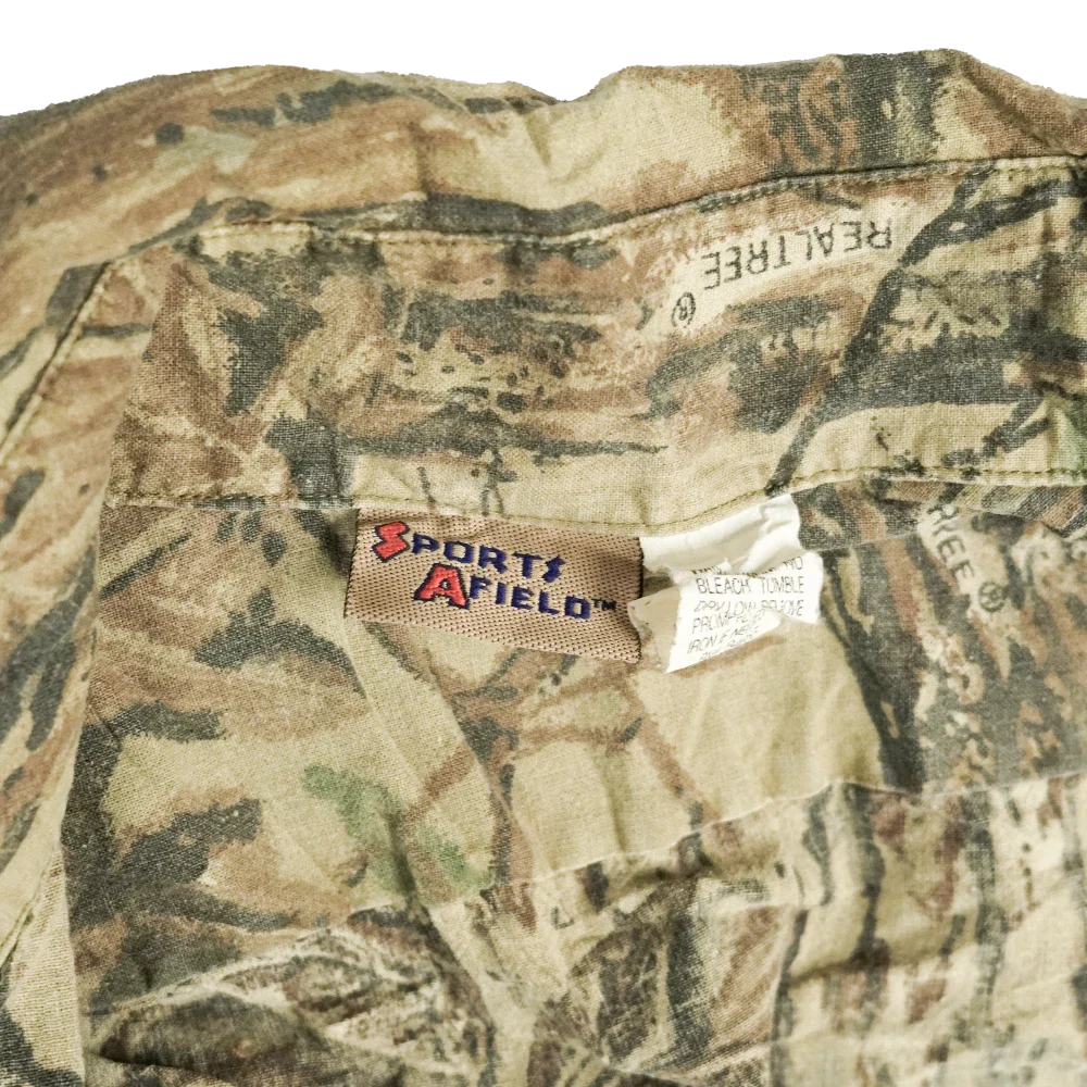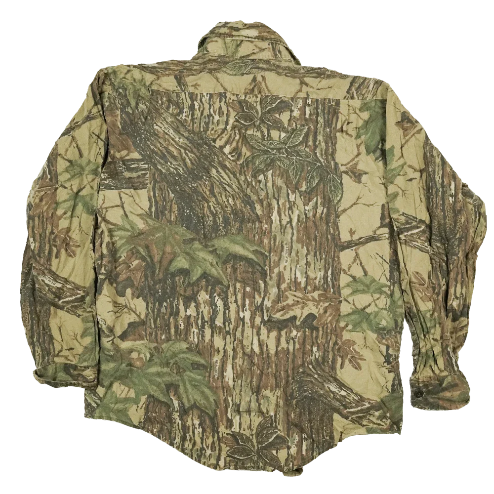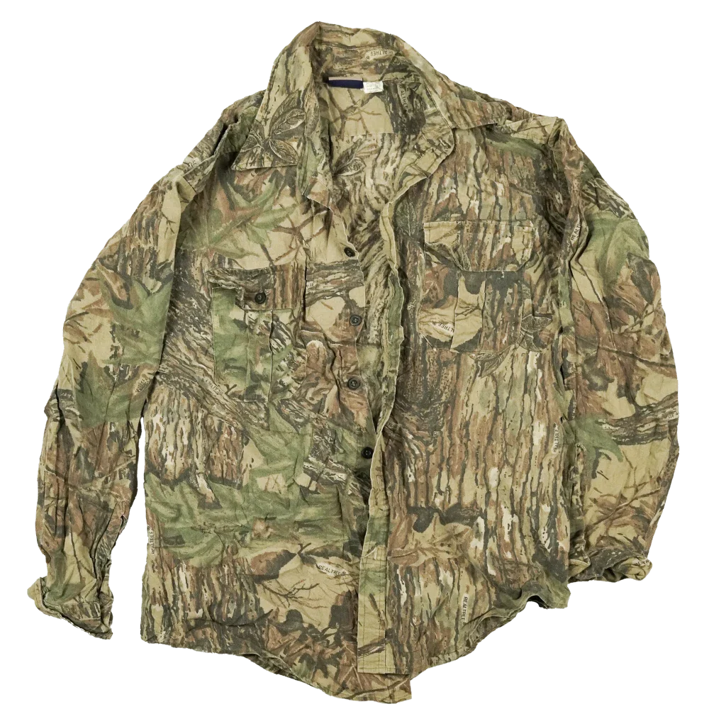 Commercial button-up hunting shirt from the 1990s in a Realtree camouflage pattern. Made in the USA.